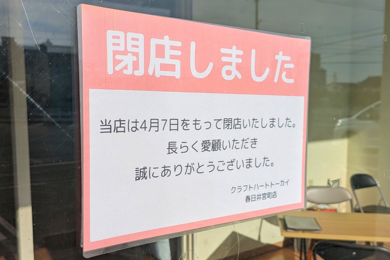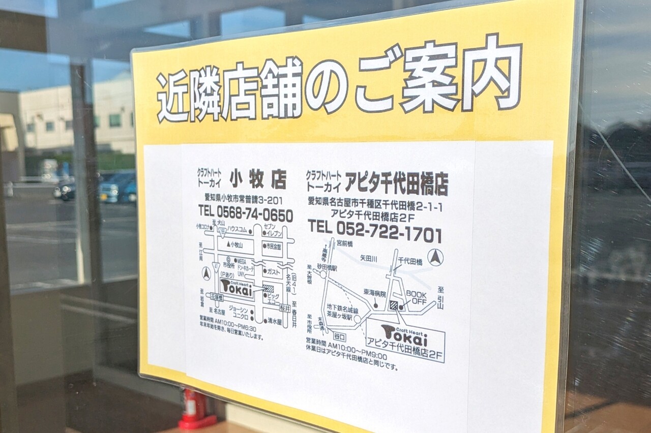 今年4月7日までは手芸店のクラフトハートトーカイが営業していた建物。