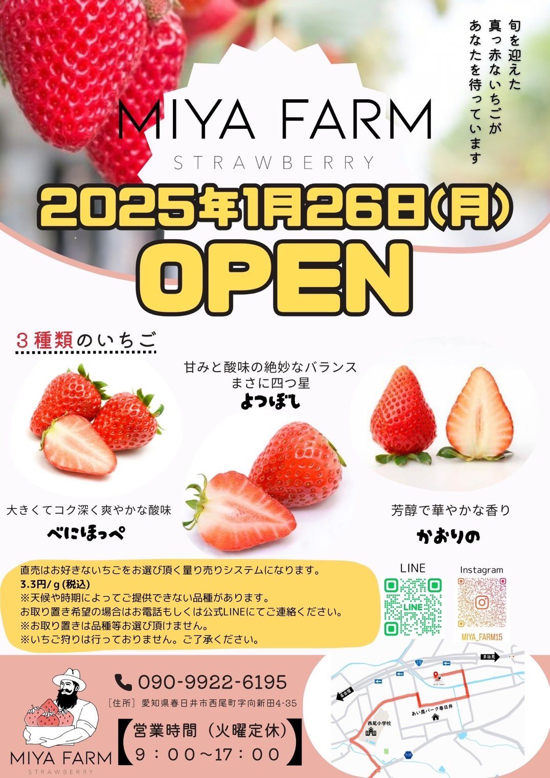 春日井市西尾町に「いちご農園 MIYAFARM」がオープンしています。