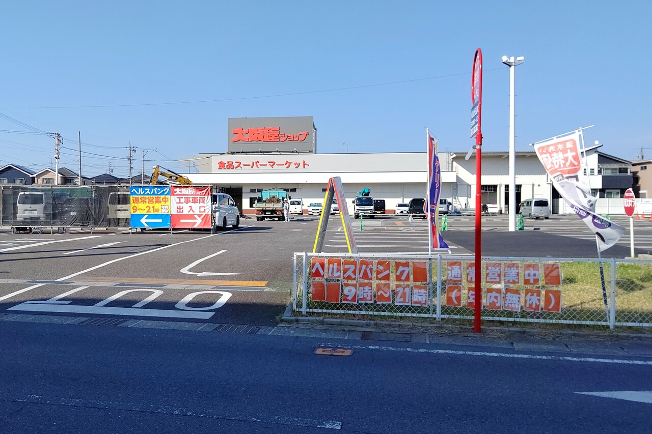 大阪屋ショップの場所はスーパー三心江南店の跡地になります。