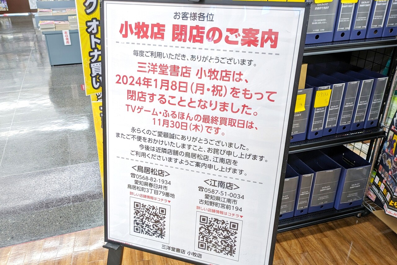 三洋堂書店よりも少しだけ早く閉店します。
