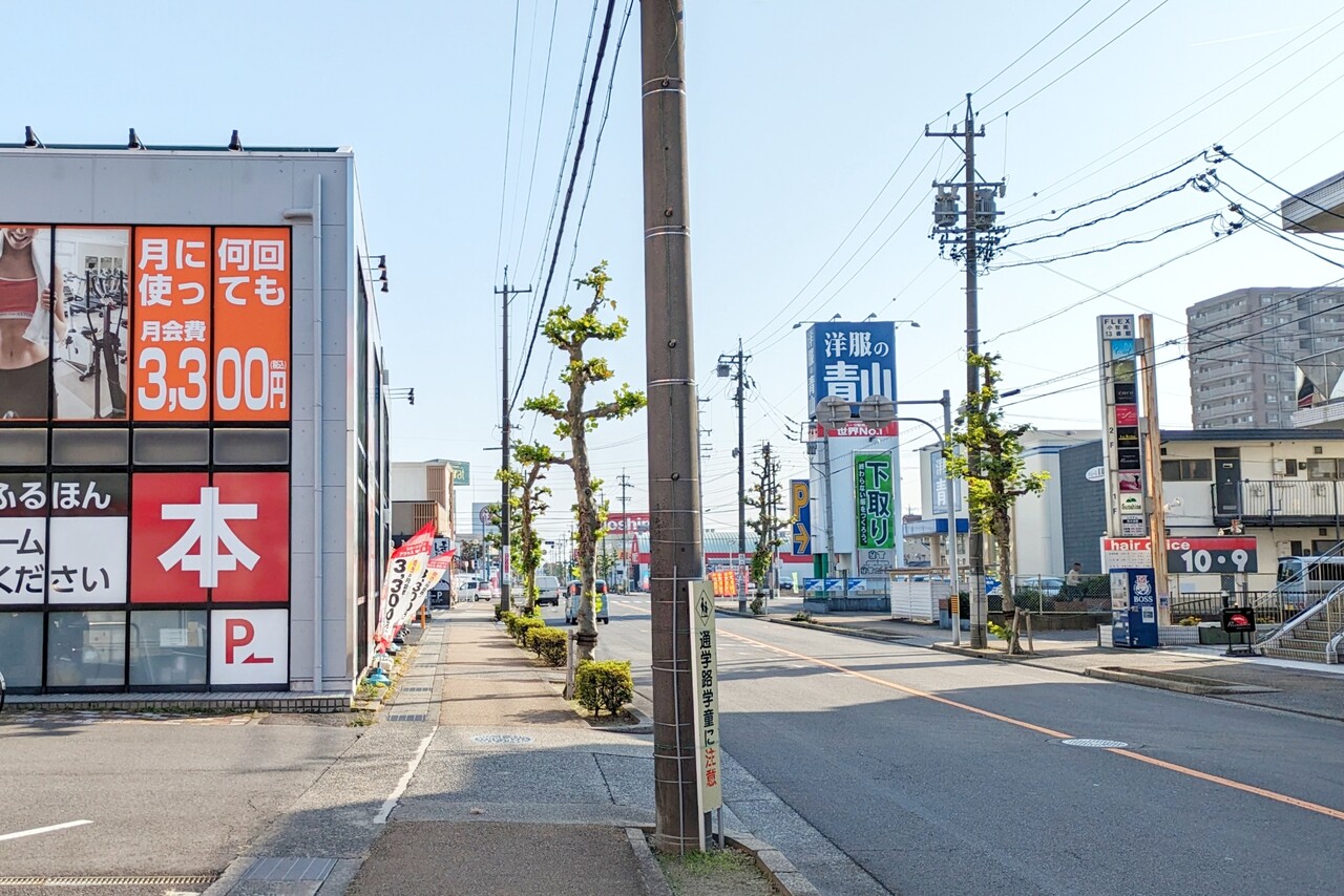 清水屋やジョーシンの近く。斜め向かい側には洋服の青山。