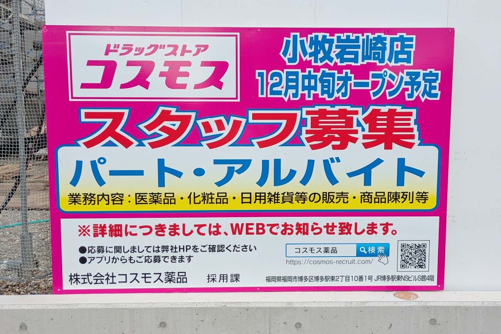 前回見た時にはなかった看板の姿が。小牧初となるドラッグストアコスモス。