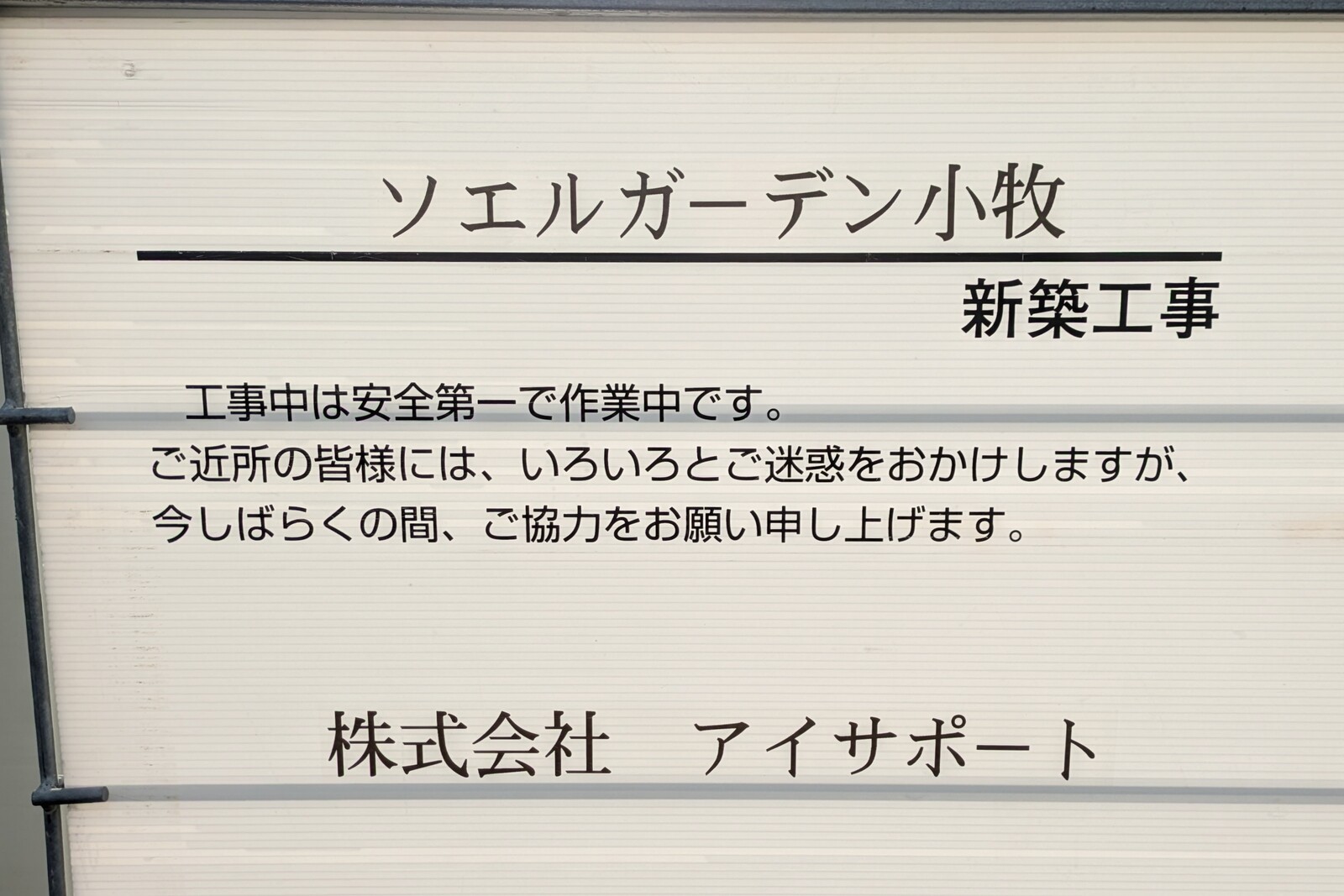 工事は「ソエルガーデン小牧」の新築工事。調べてみると、住宅型有料老人ホームでした。