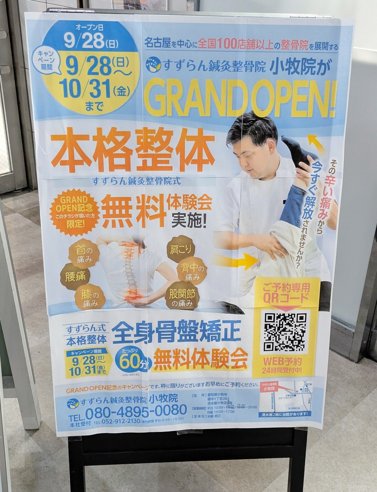 小牧市郷中の清水屋小牧店内に「すずらん鍼灸・接骨院」がオープンしています。