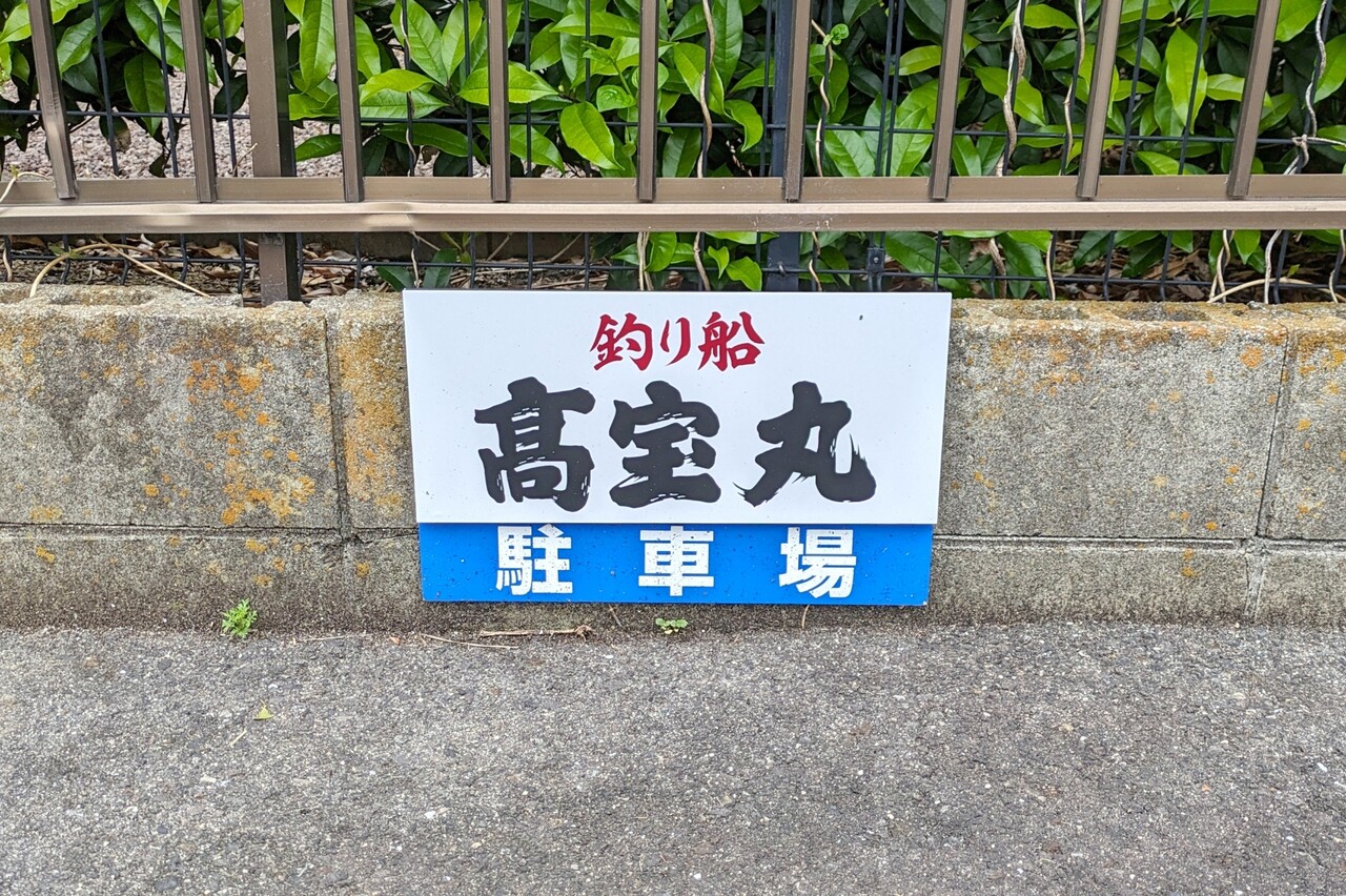 この看板が付いている所が髙宝丸の駐車場。分かりやすいですね。