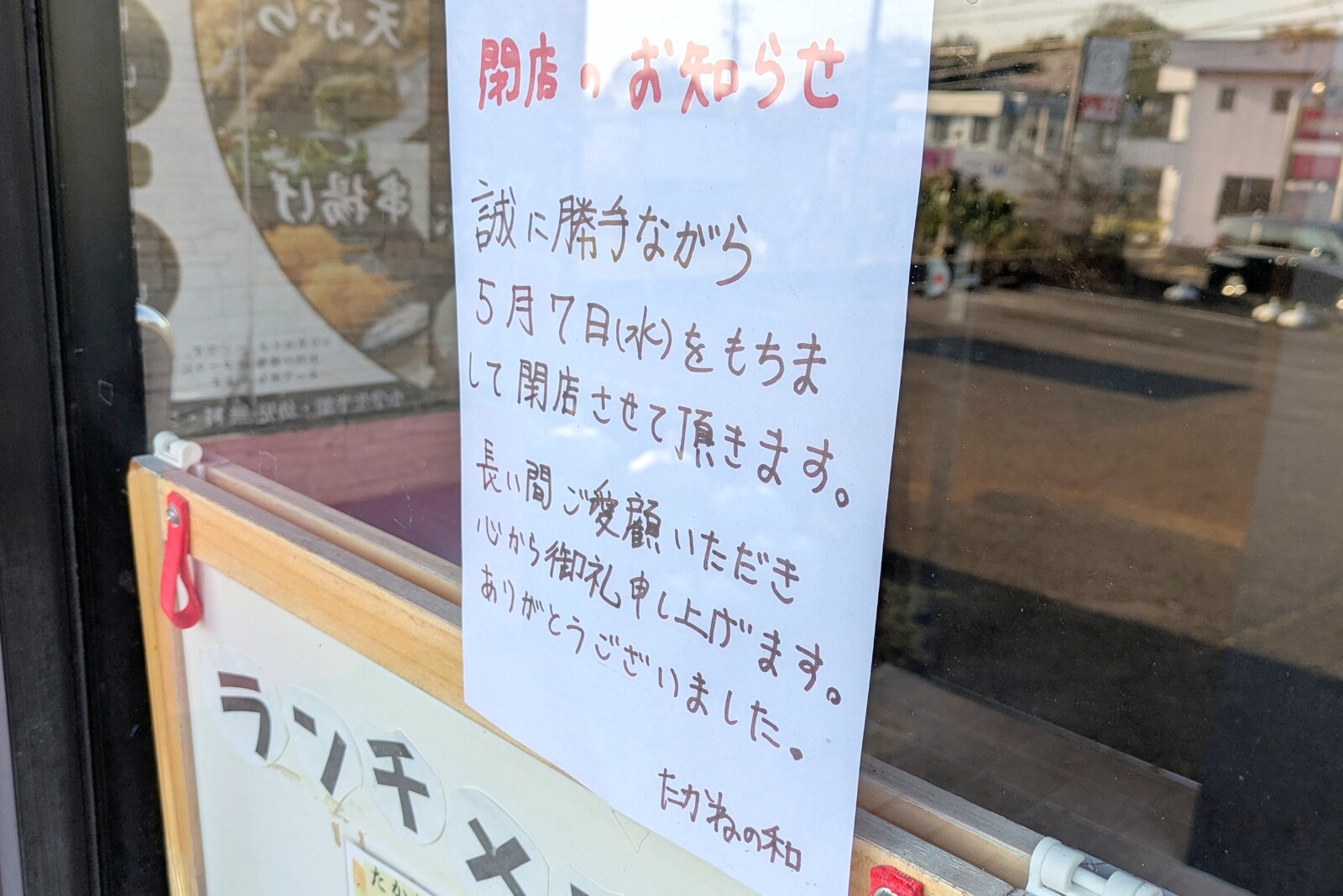 たかねの和は5月7日(水)をもって閉店に。