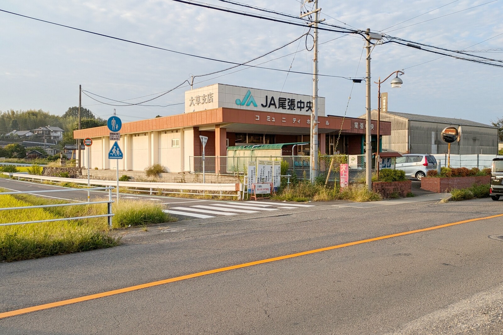 斜め向かい側にはJA尾張中央の大草支店だった建物があります。(※2024年3月11日に閉店。小牧市高根のJA尾張中央本店に店舗統合)