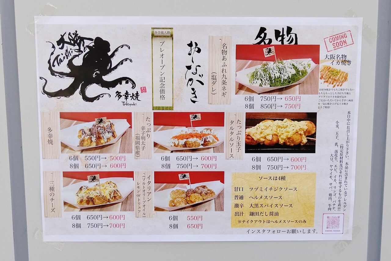 複数種類のたこ焼き、そして今後はスジコン、ネギ焼き、イカ焼き等のメニューも出していくようです。