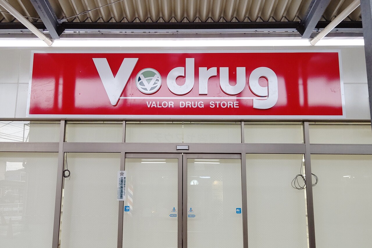 今までブイドラッグの看板をまじまじと眺めることは無かったですが、よく見ると大きな「V」の右にも小さな「V」が付いてます。新発見。笑