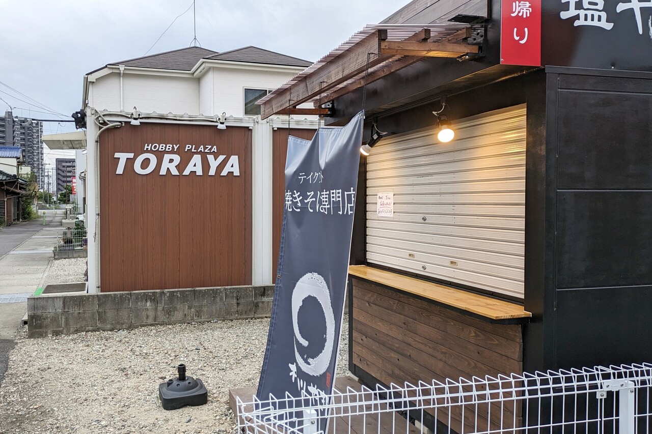 お店の場所はホビープラザとらやの隣。すでに売り切れなので、今日は食べることができず。