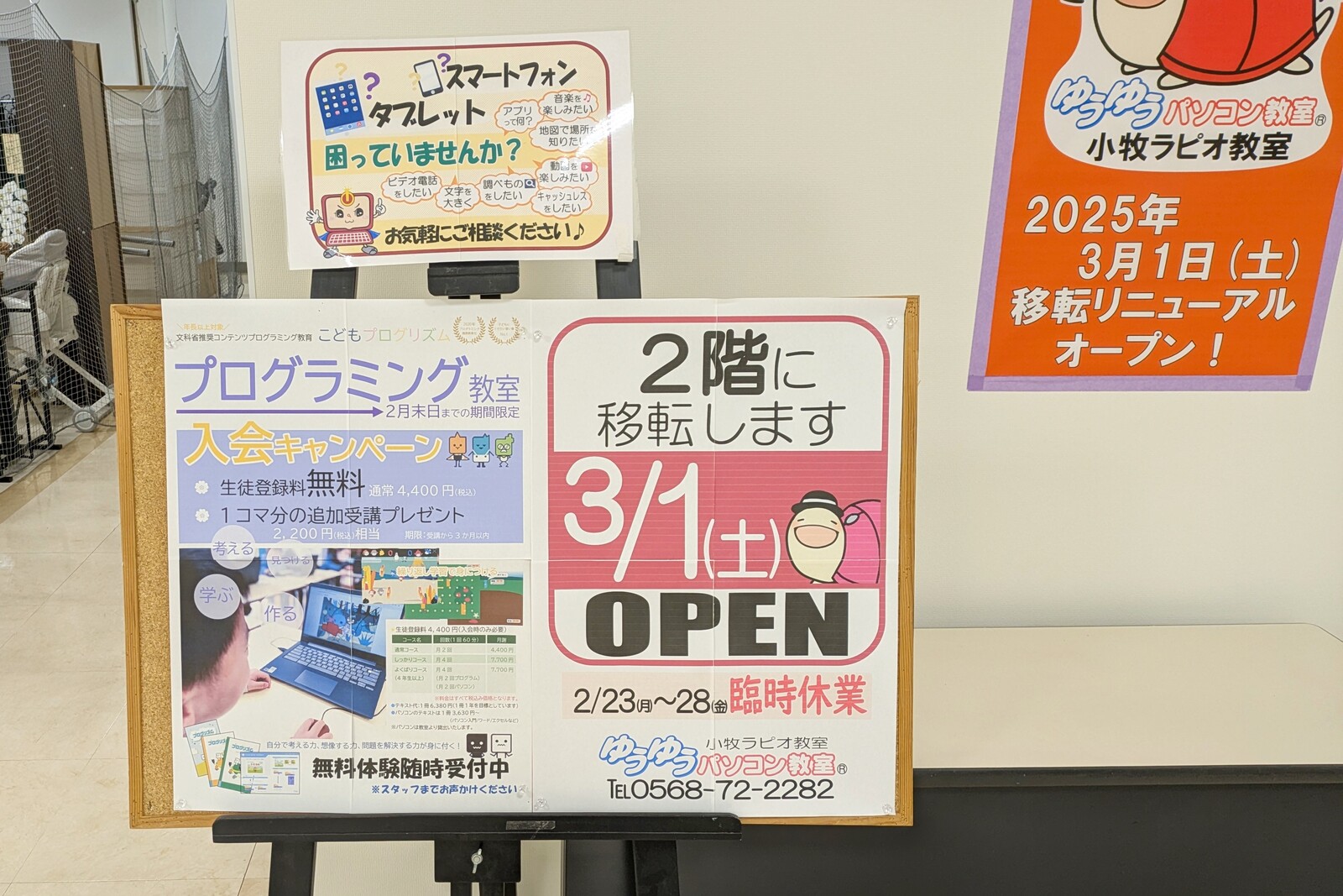 小牧市小牧のラピオ内の「ゆうゆうパソコン教室」が2階に移転しています。