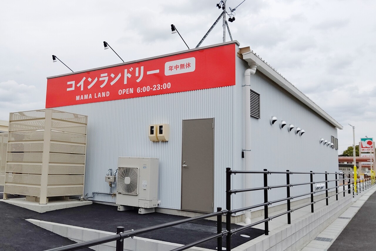 最近、お店の駐車場にコインランドリーを設置するスタイルはちょくちょく見ますね。