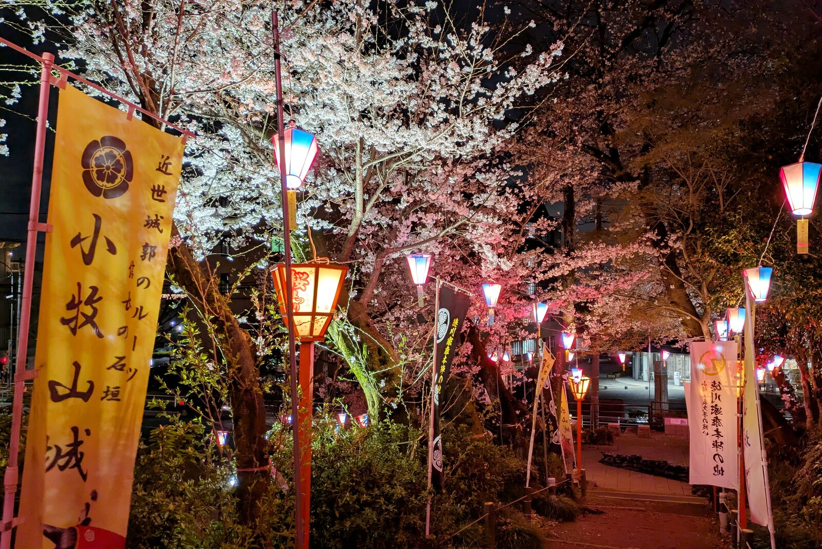 posted 2025年04月02日 小牧山南側の桜の開花状況。週末にかけて満開に? 4月1日の夜に小牧山の夜桜を見に行ってきました。 週末にかけて満開に? 木によってはかなり満開に近いものもありましたが、全体的に満開までもうちょいといった感じでした。 名古屋の満開予想日は4月4日になっており、今週が一番の見頃じゃないでしょうか。週末にかなり良い状態で楽しめそうな開花状況。 4月6日までは小牧山さくらまつりが開催中で、露店・キッチンカーも出ているのでぜひ。 ■史跡小牧山 住所:愛知県小牧市堀の内1丁目1番地 備考:4月6日までは小牧山さくらまつり開催中 「フォト」カテゴリの最新記事 タグ :#小牧市#小牧山#桜#小牧山さくらまつり#お花見#露天#キッチンカー#夜桜#ライトアップ 4月5日(土)9:00~16:00で『さくらマルシェ』が開催。天満天神社にて(小牧市下末)イオン小牧店2階の「LOBELIA」が4/13(日)をもって閉店
