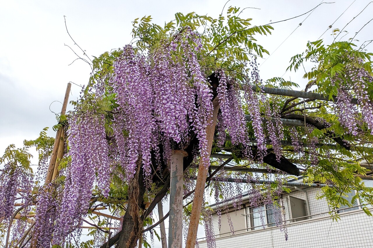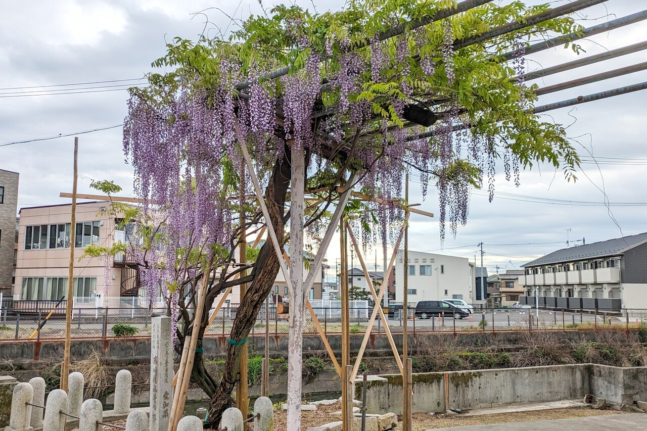 小牧市岩崎の「岩崎清流亭の藤」が見頃です。