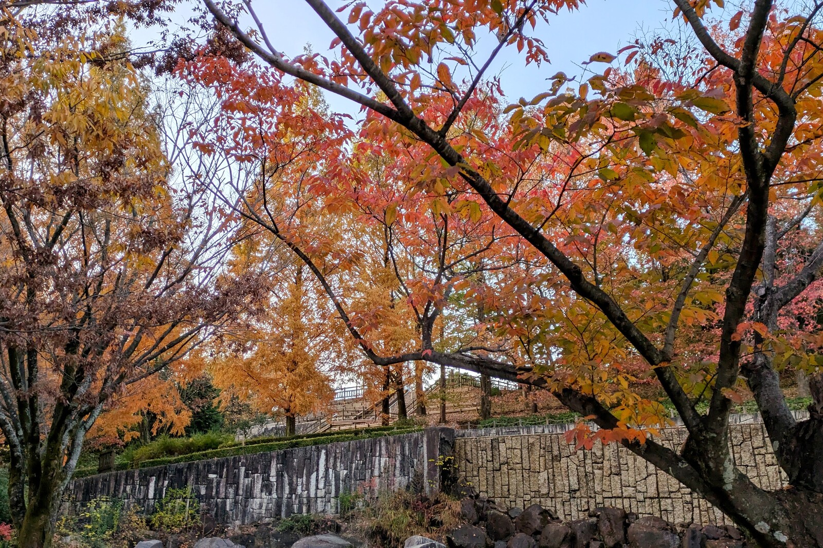 場所によっても多少違うと思いますが、市民四季の森の紅葉は12月下旬までは持たなさそうな気もするので、もう少し早めがおすすめです。