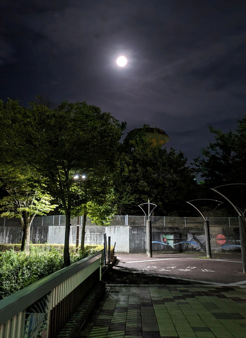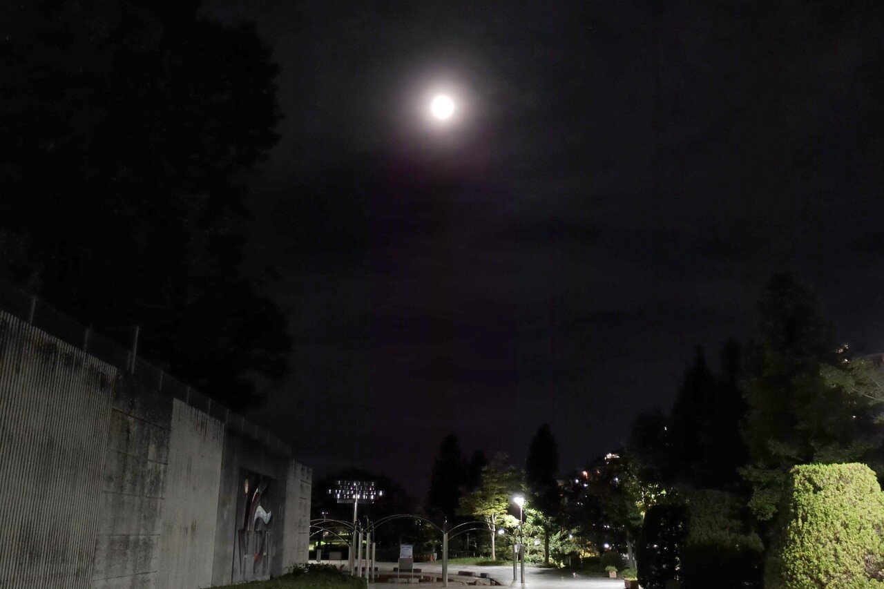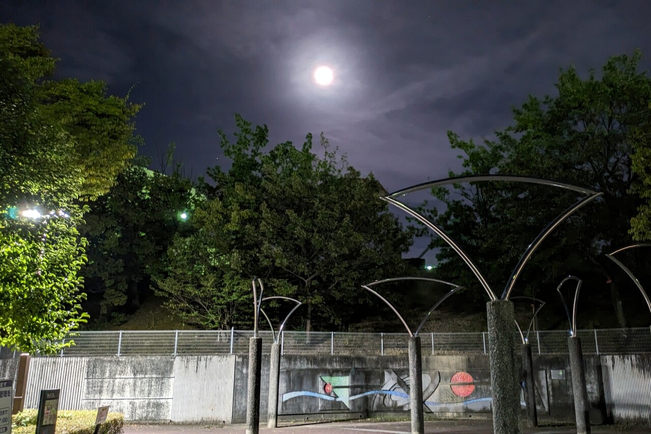 今日はスーパーブルームーンということで、桃花台中央公園に見に行ってみました。