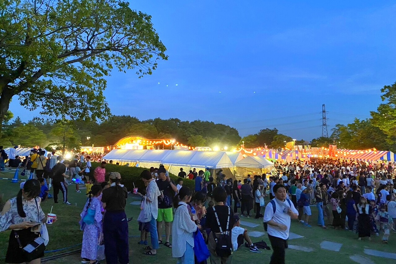 会場の桃花台中央公園芝生広場。暗くなる前からすでに大勢の方々で賑わっていました。