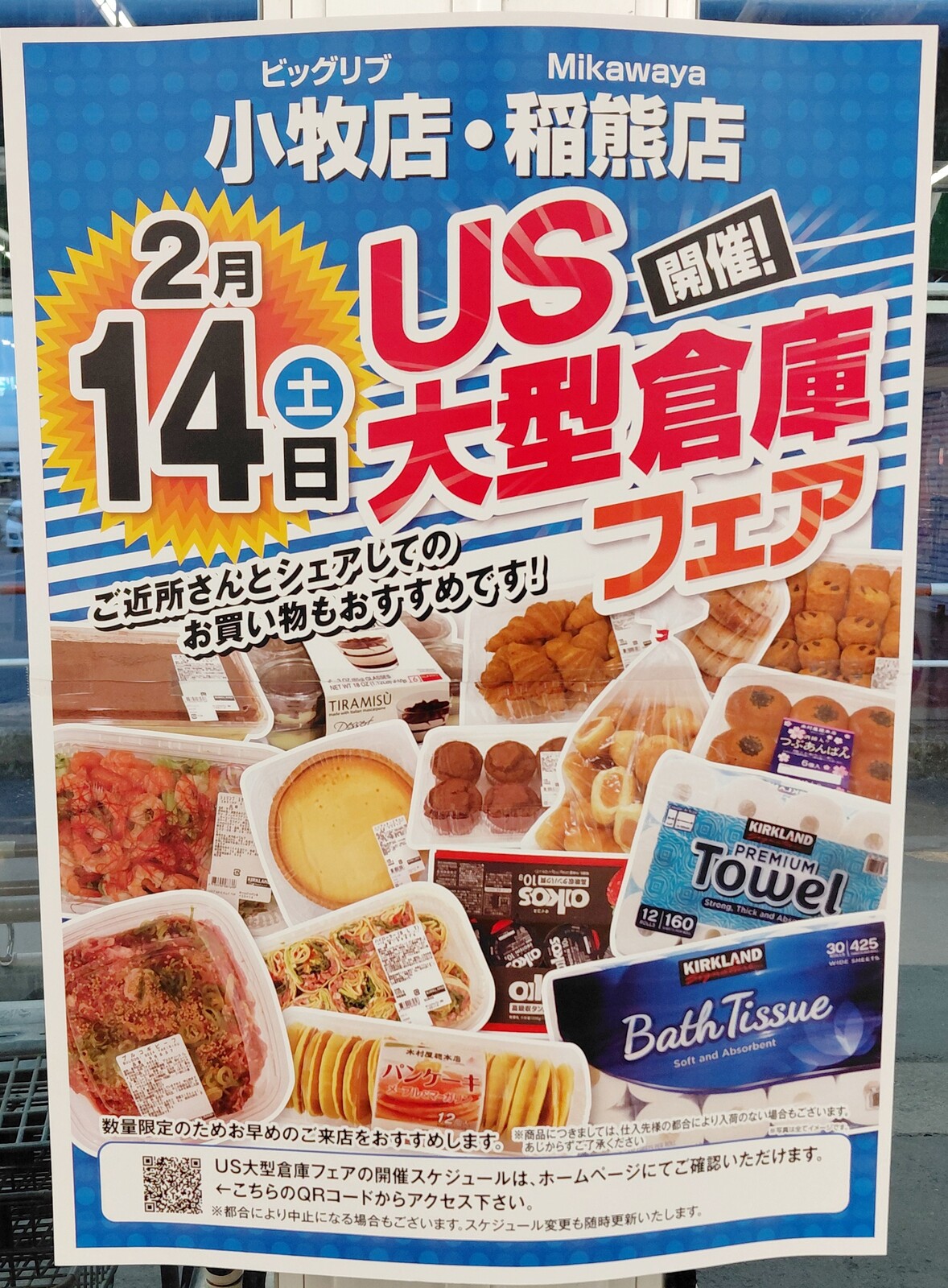 2/14(土)は『US大型倉庫フェア』が開催。はい、コストコのことですね。