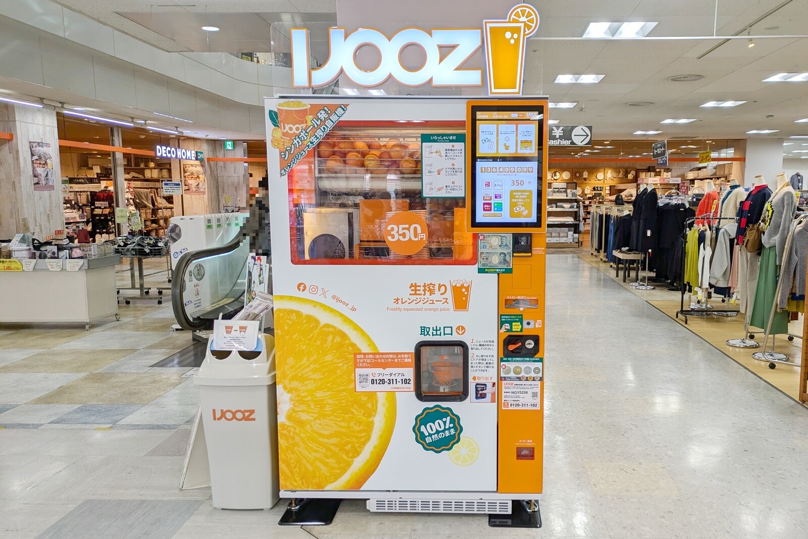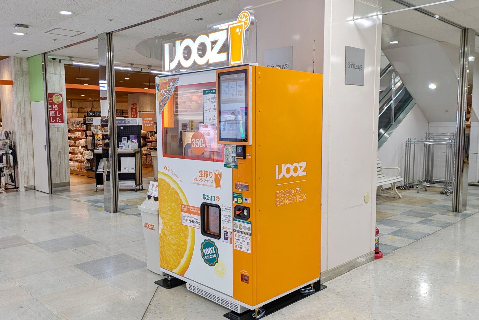 小牧市郷中の清水屋小牧店に、生搾りオレンジジュースの自販機「IJOOZ」が登場。