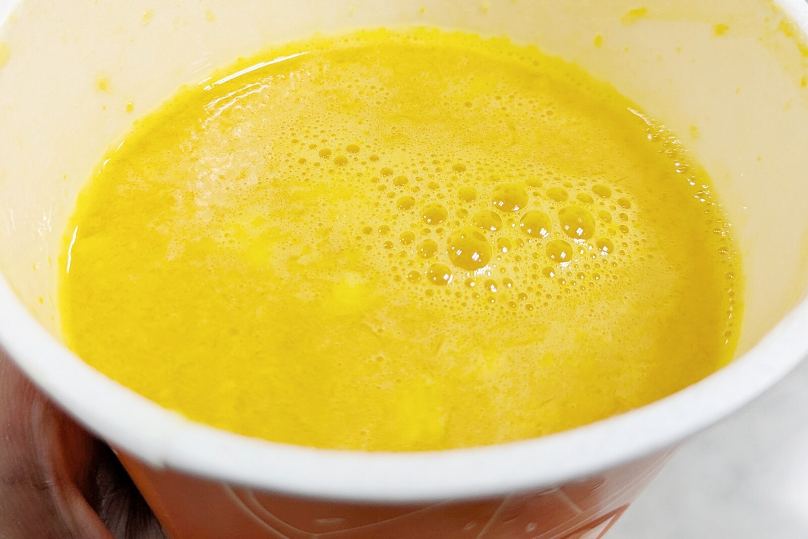 本来はビニールのフタが付いた状態でストローを刺して飲むんですが、中身はこんな感じ。