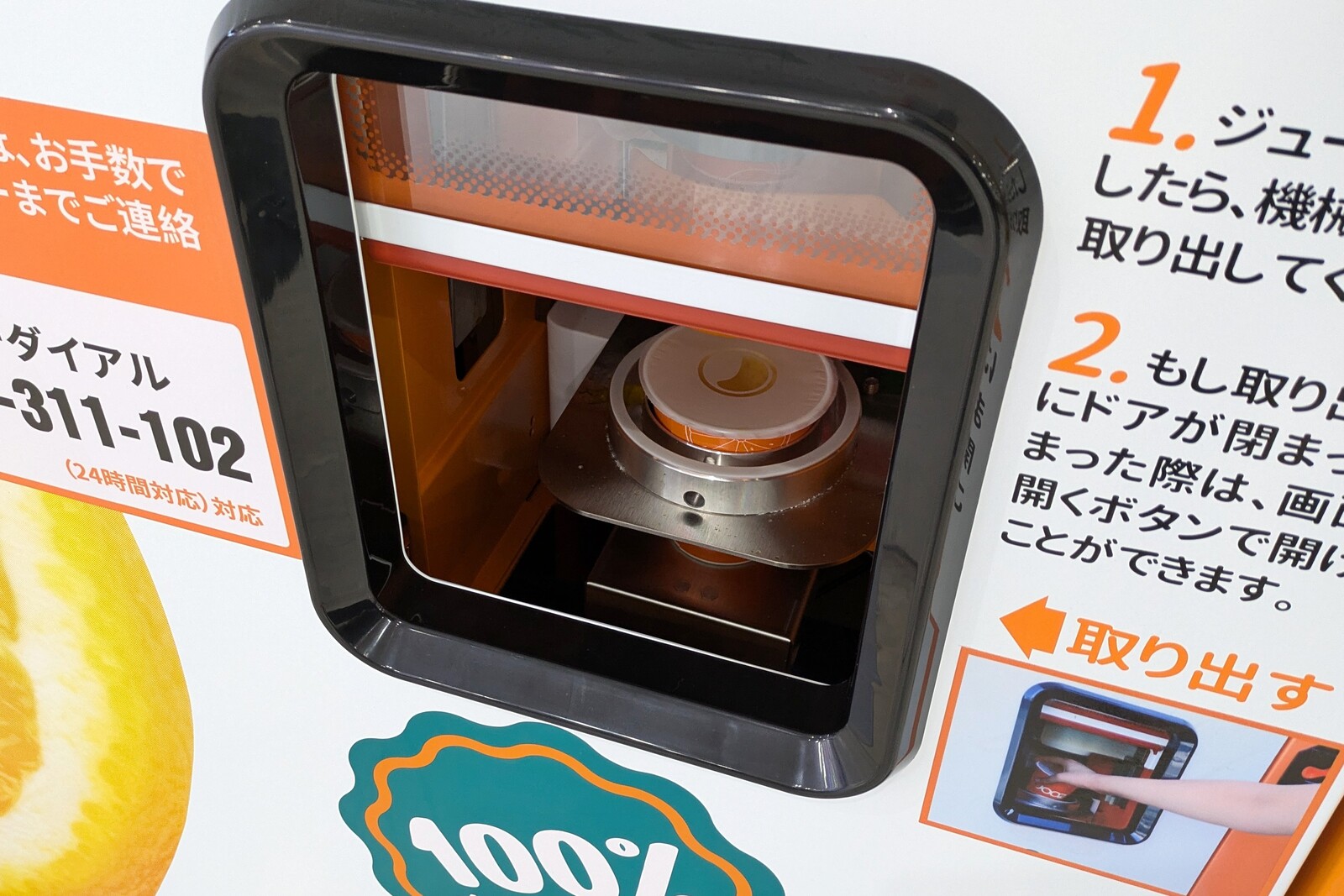 もうご存知の方が多いと思いますが、シンガポール発の生搾りオレンジジュースの自販機。