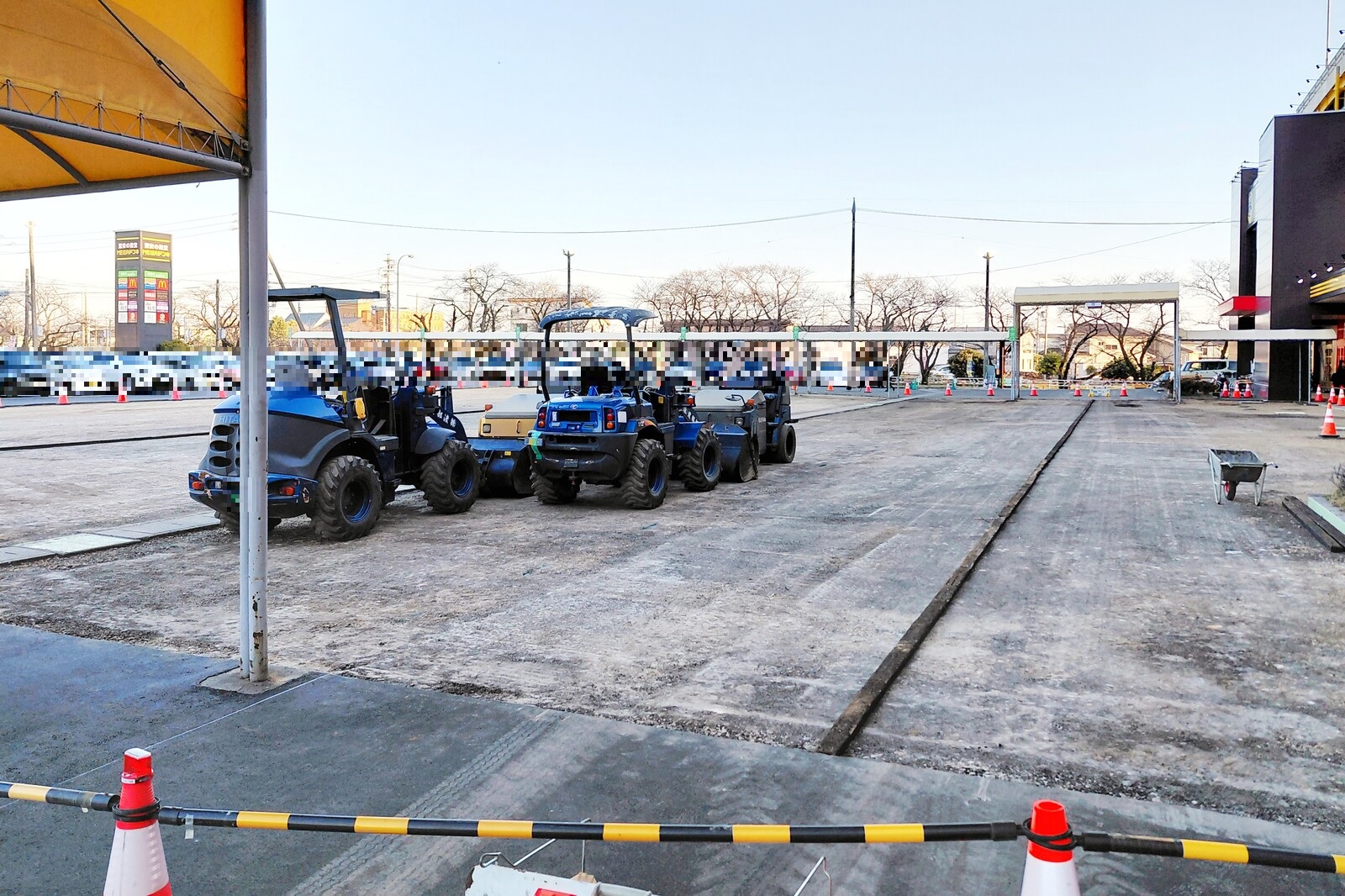 結構久しぶりに来たんですが、ちょうど店舗真ん前の平面駐車場で工事を行っていました。