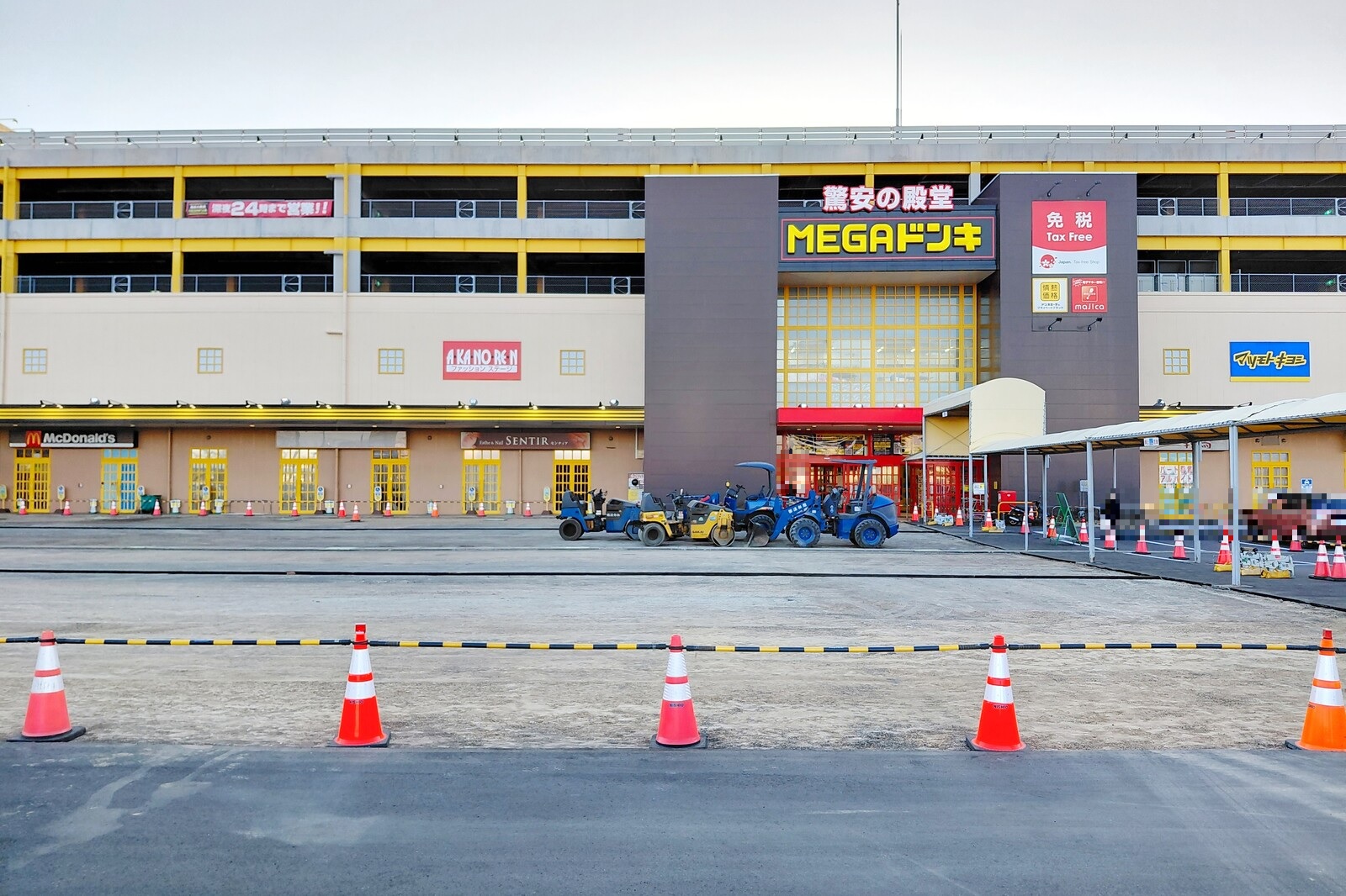 駐車場改修工事中のMEGAドン・キホーテUNY大口店。