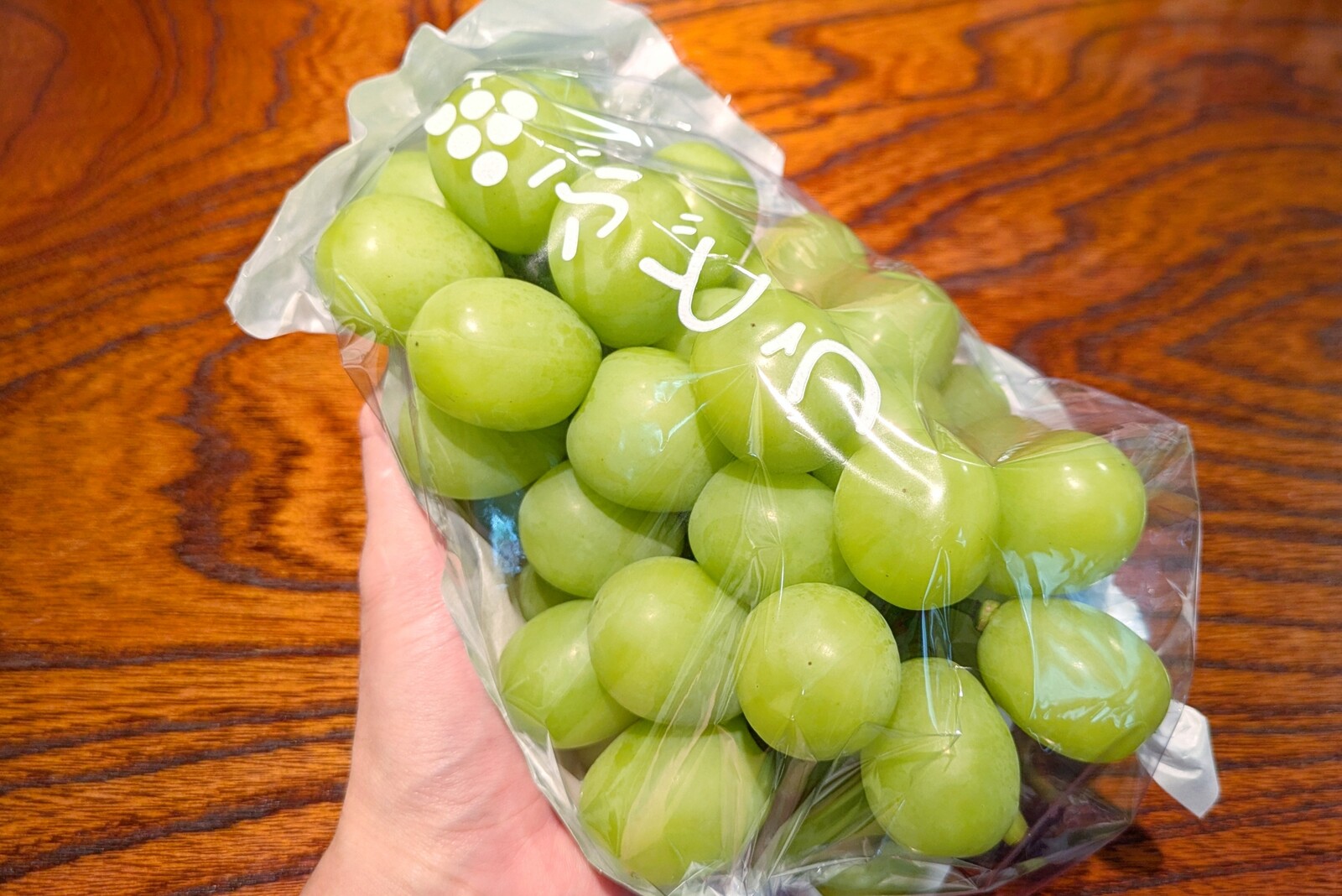 シャインマスカットはかなりボリューム感のある房をゲット。結構ずっしりとしています。