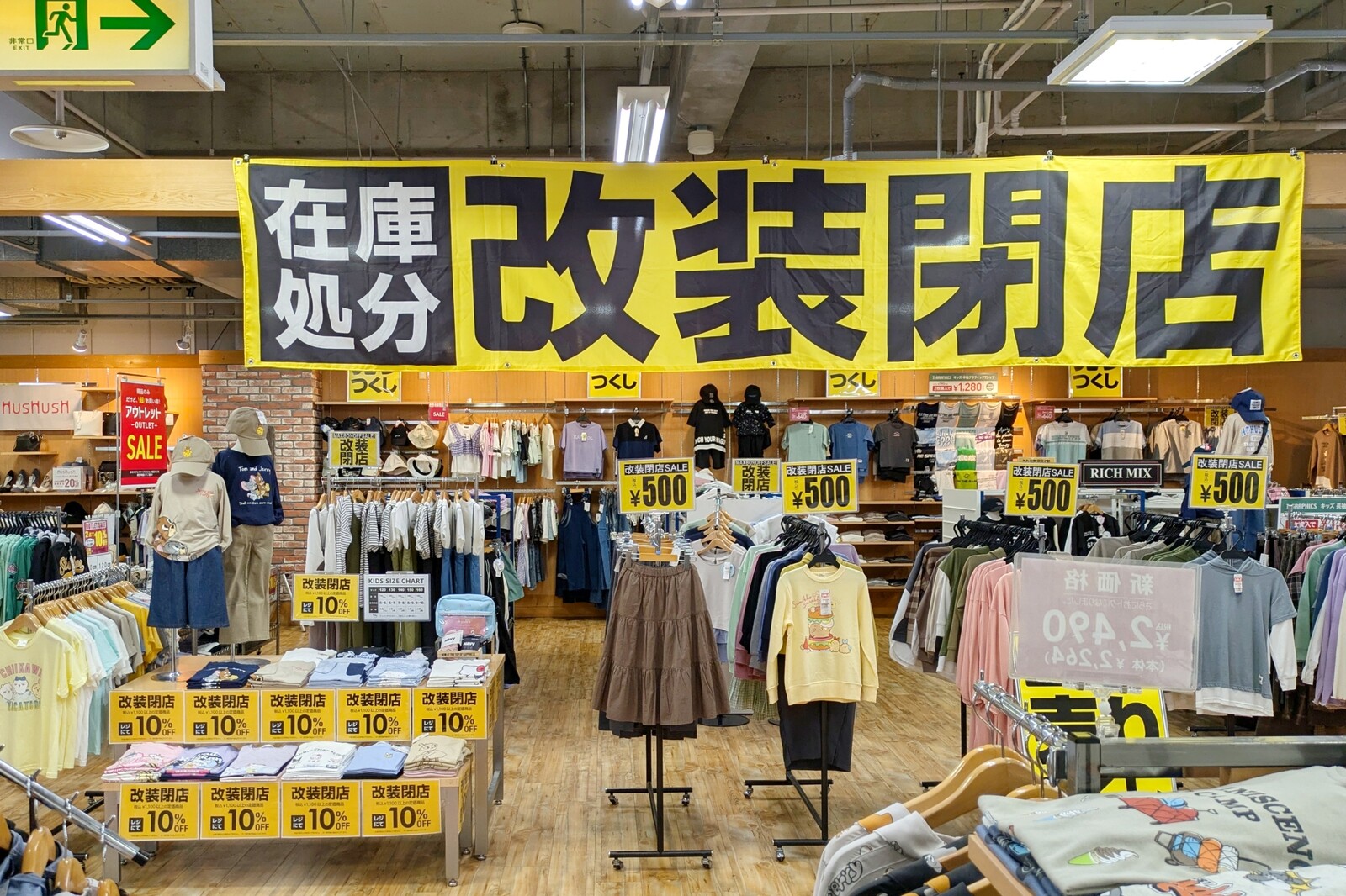 最大80%OFFの改装閉店売りつくしセール。税込1,100円以上の定価商品は全品レジにて10%OFF。