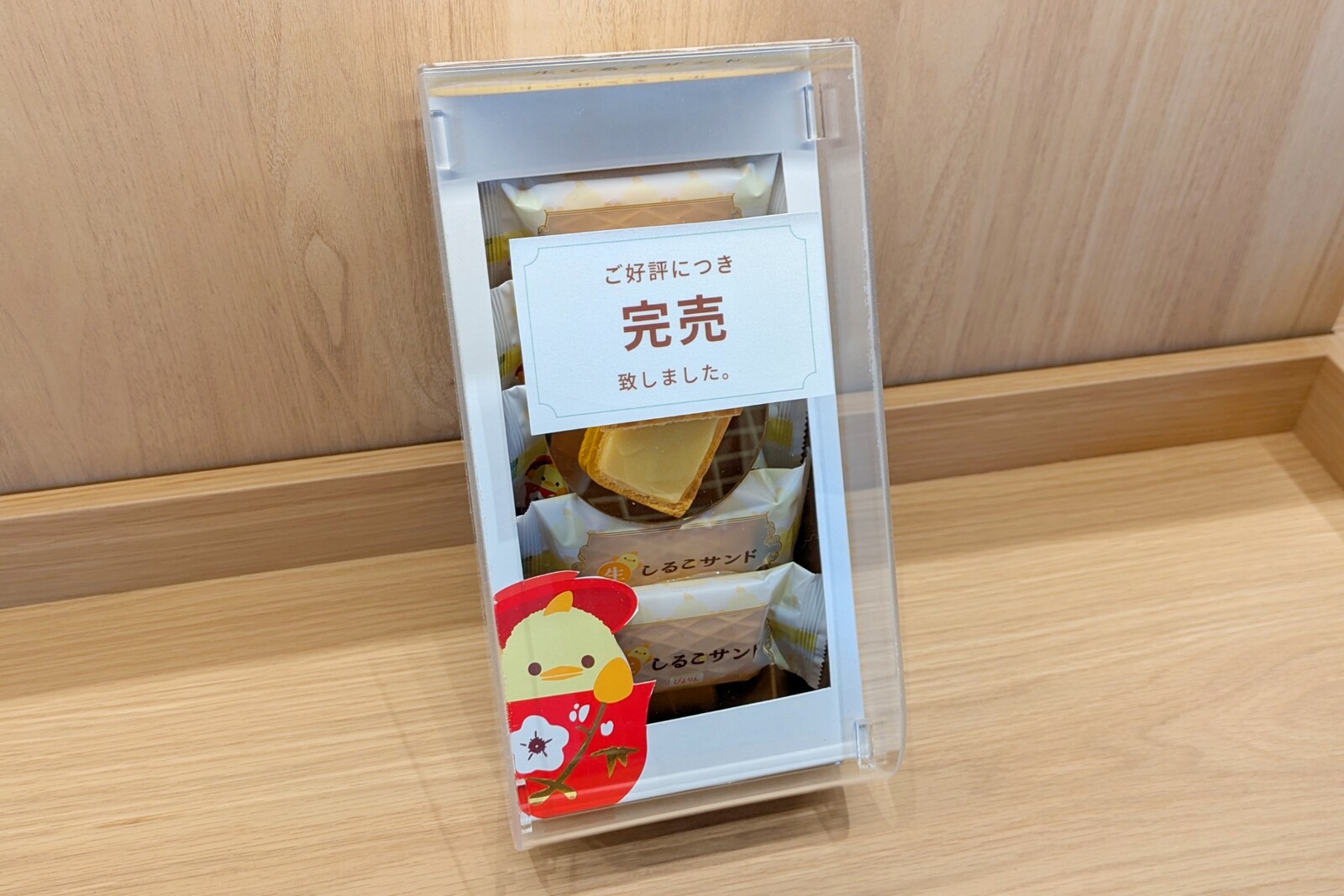 ぴよりんとのコラボ商品、生しるこサンド×ぴよりん。もちろん完売。