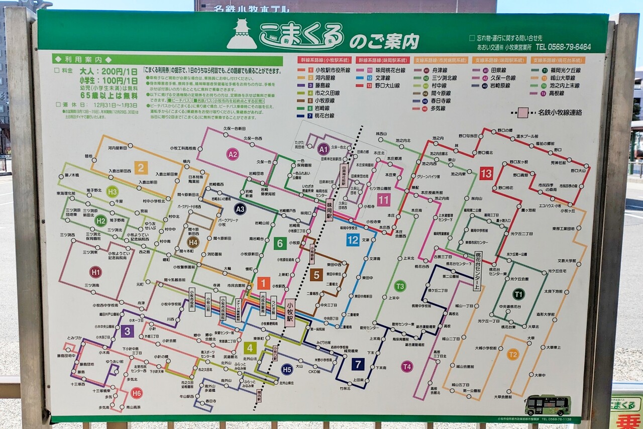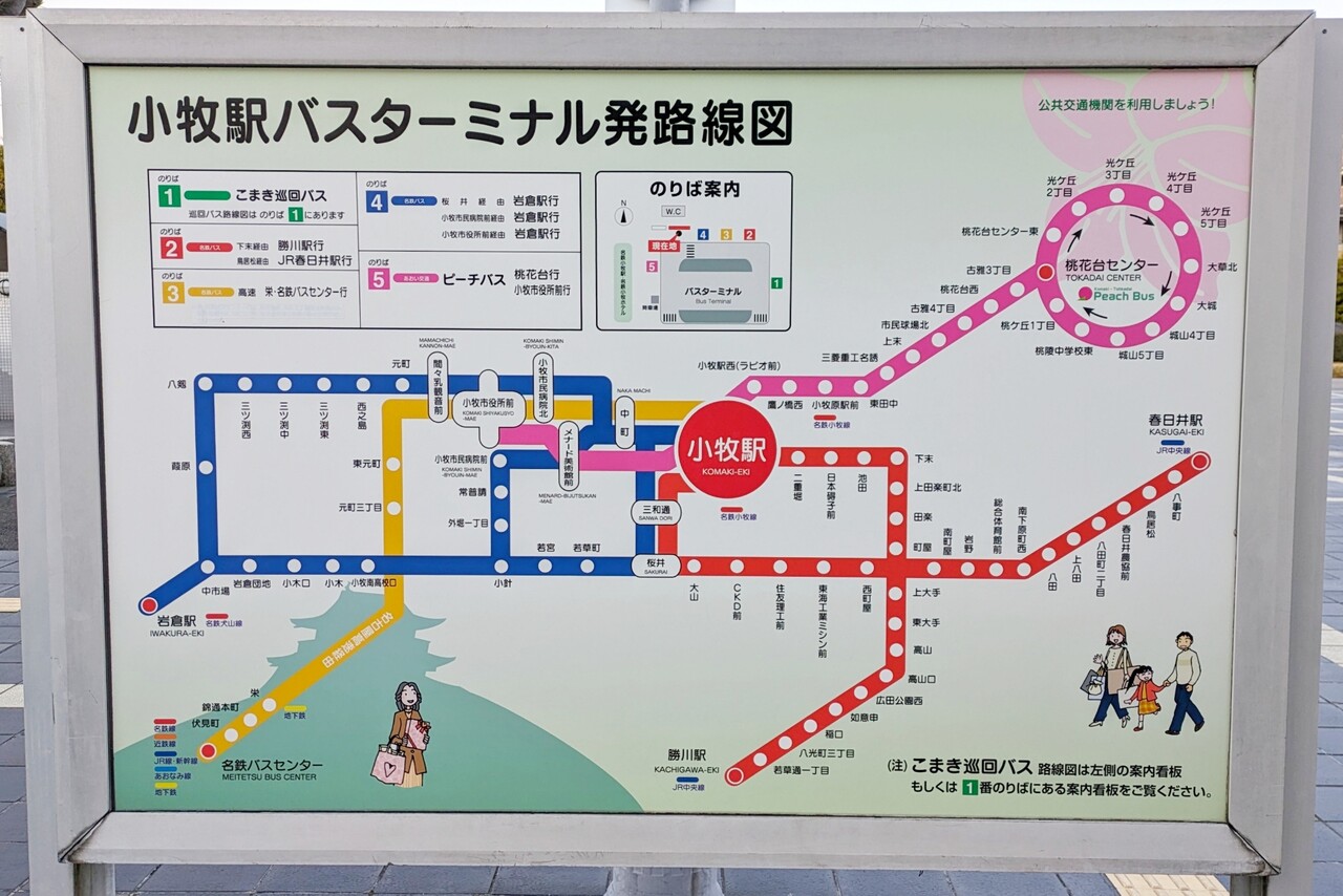 すぐ近くにあった小牧駅バスターミナル発路線図。