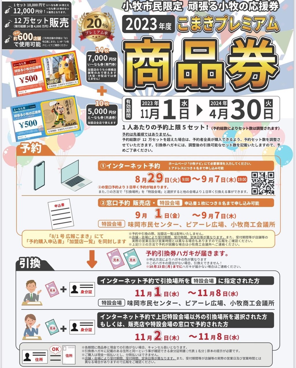 プレミアム率20%ということで1セット12000円分の商品券を10000円で購入できます。 市内在住の方限定で、1人5セットまで予約可能です。