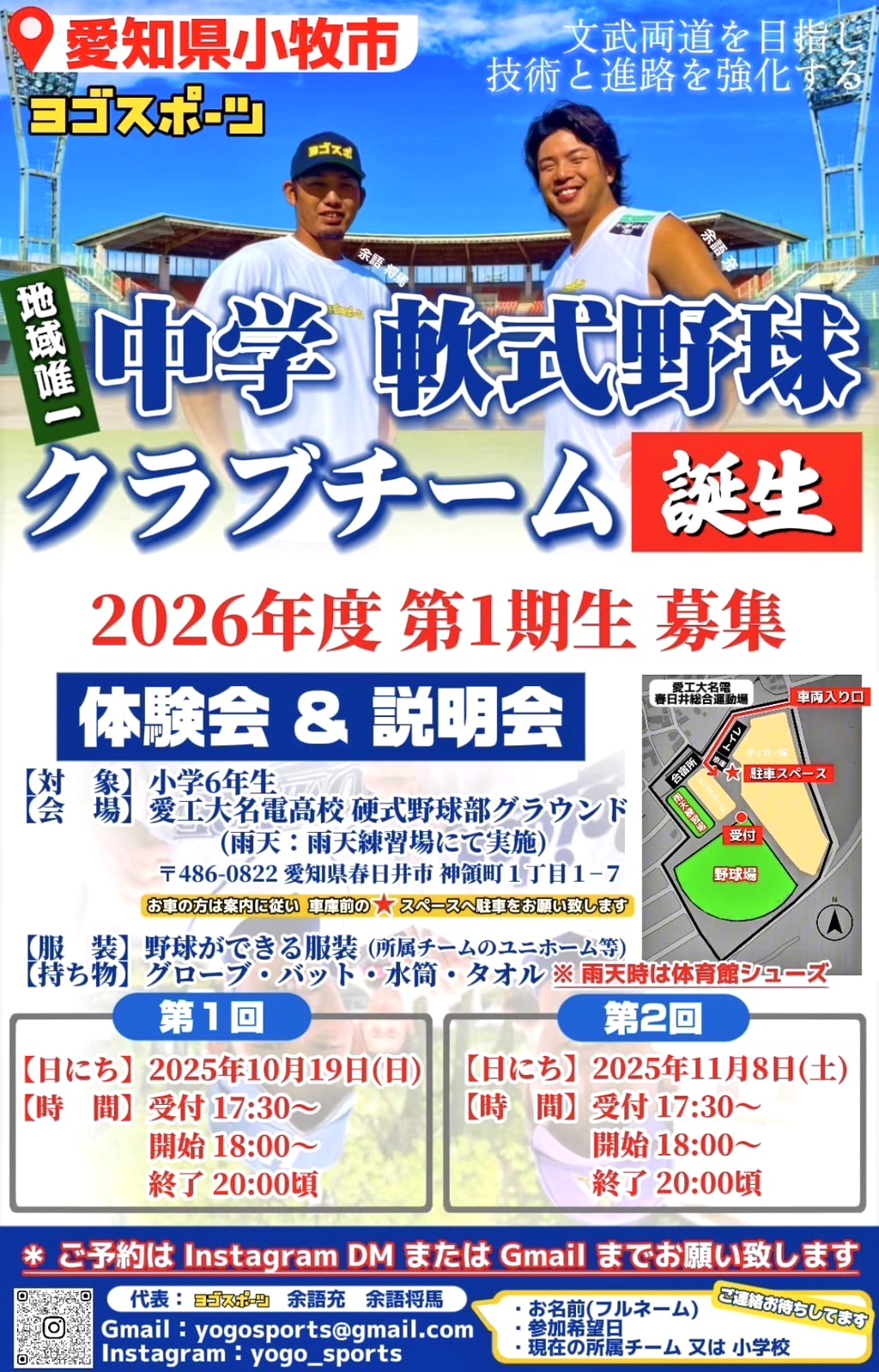 小牧市出身のヨゴスポーツのお二人が2026年度にスタートさせる中学軟式野球クラブチーム。