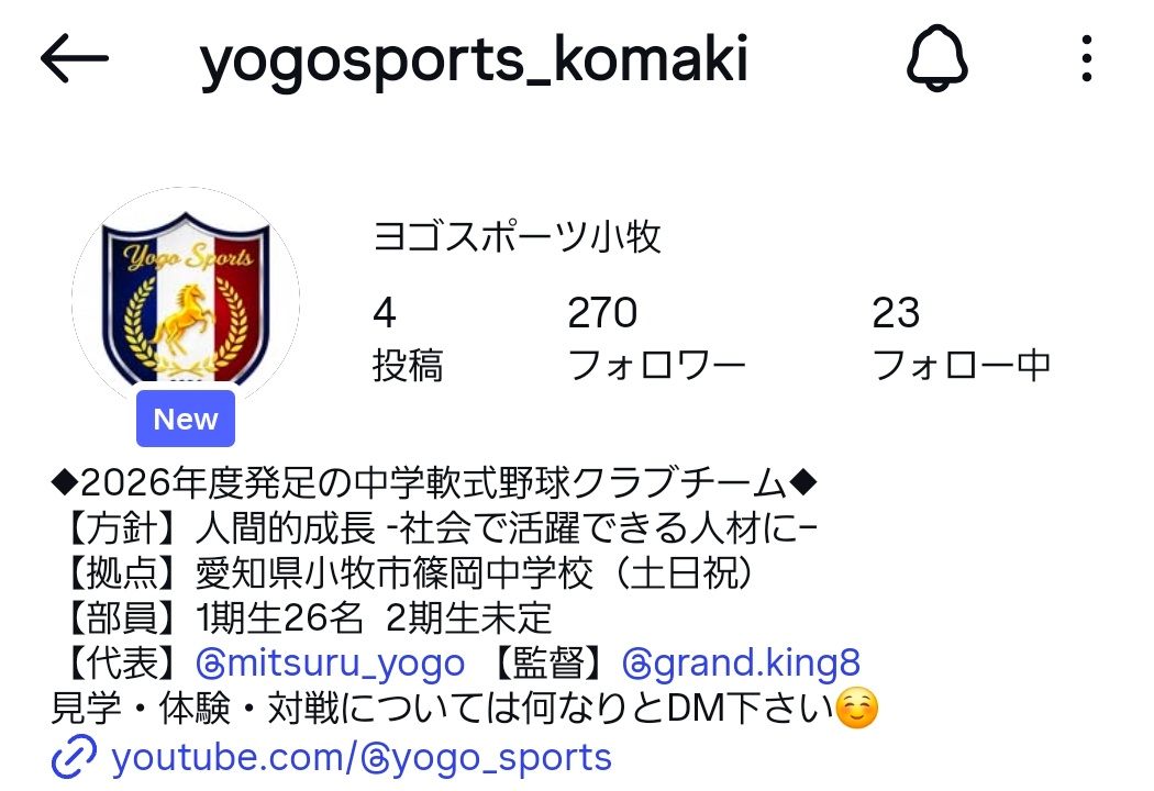 チームのInstagram(@yogosports_komaki)では日々の活動の様子をアップしていくとのこと。