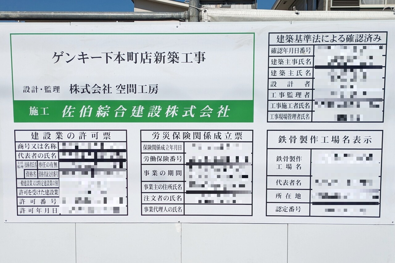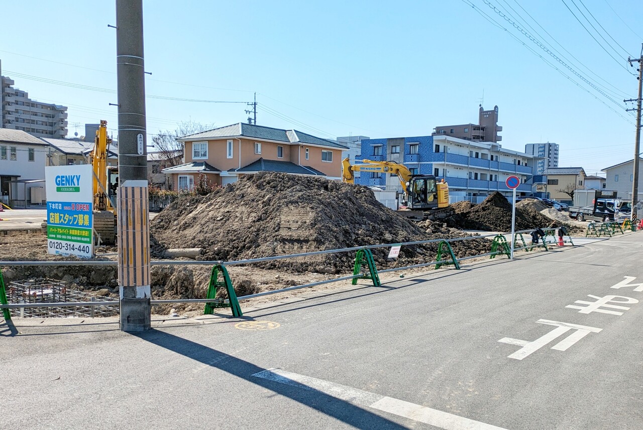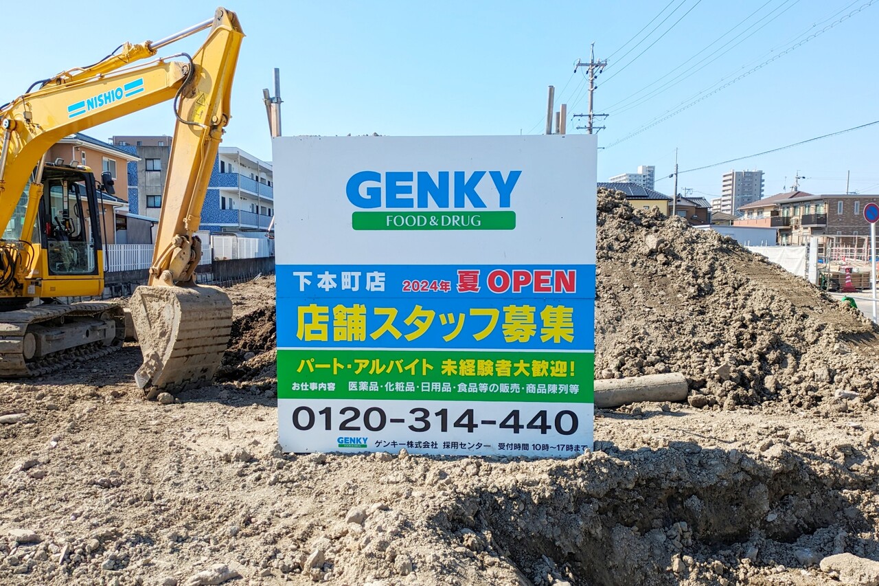今夏オープン予定の「GENKY(ゲンキー) 下本町店」の工事が始まっています。