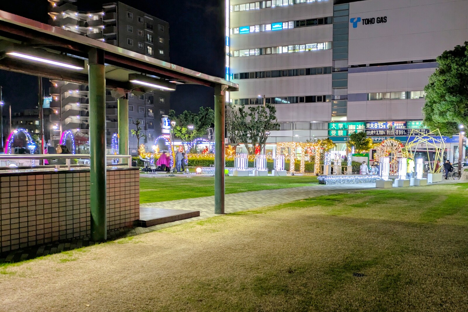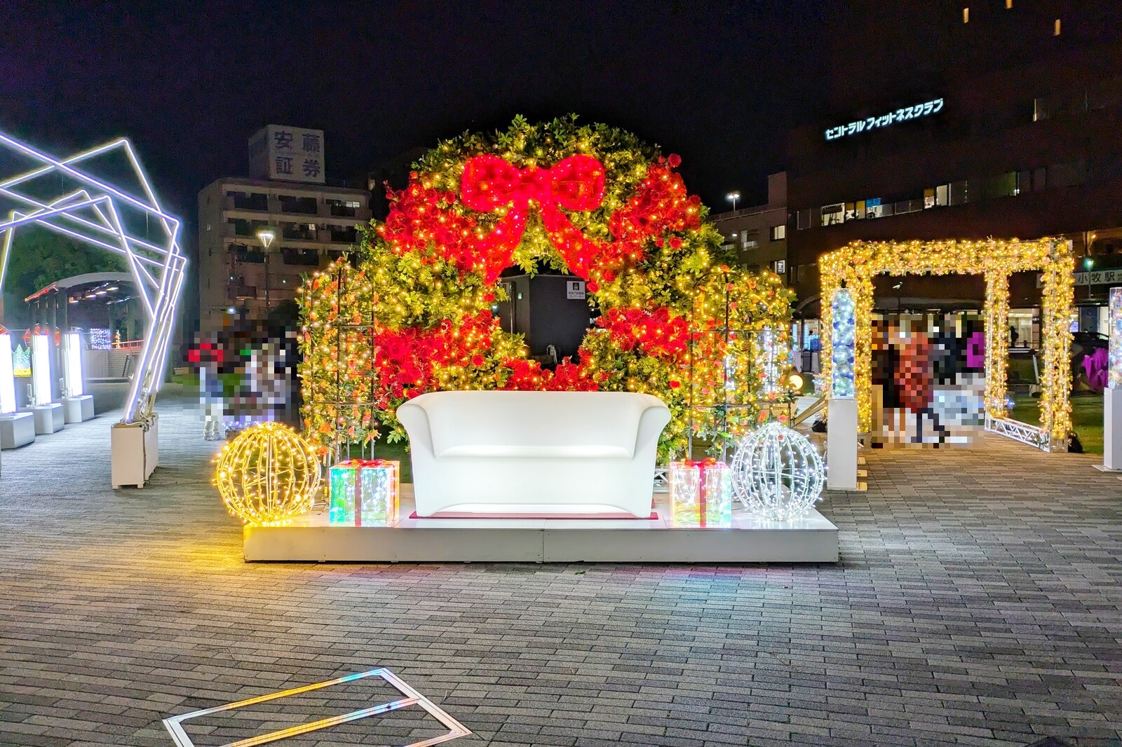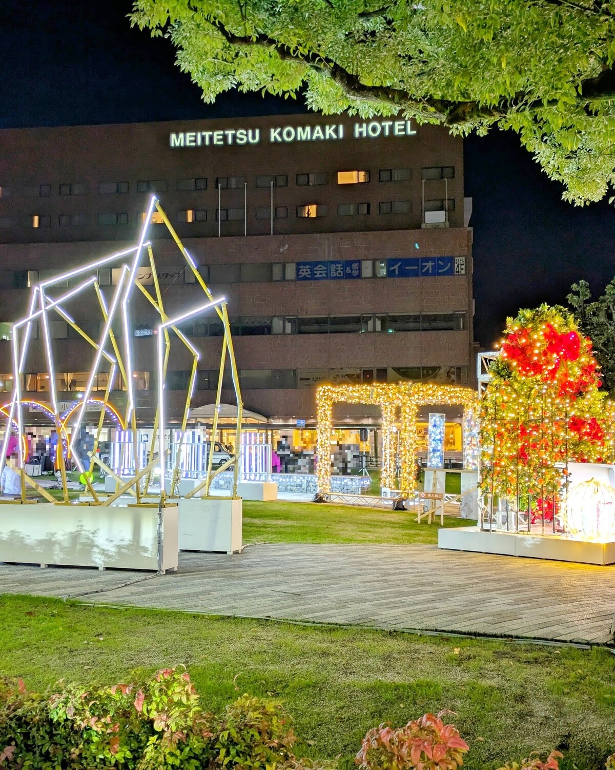 小牧駅西側が芝生広場になってからは4回目のイルミネーション。すっかり馴染んで良き駅前空間になりましたね。