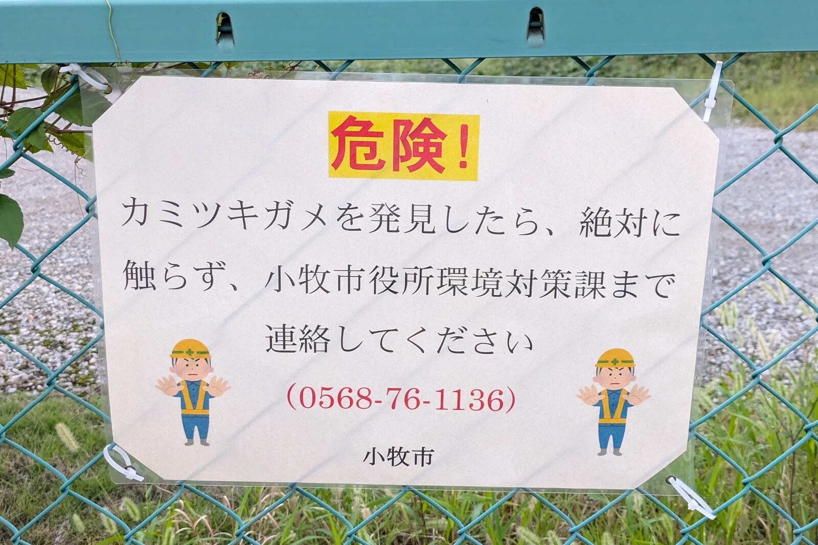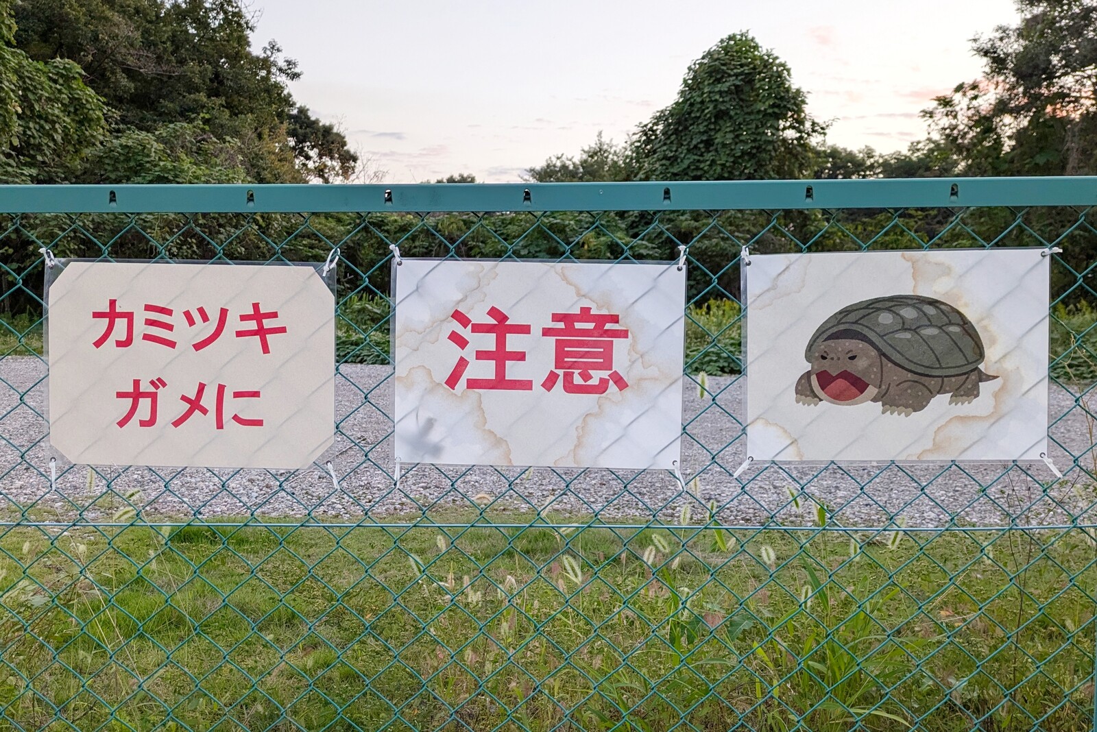 ■カミツキガメに注意の貼り紙