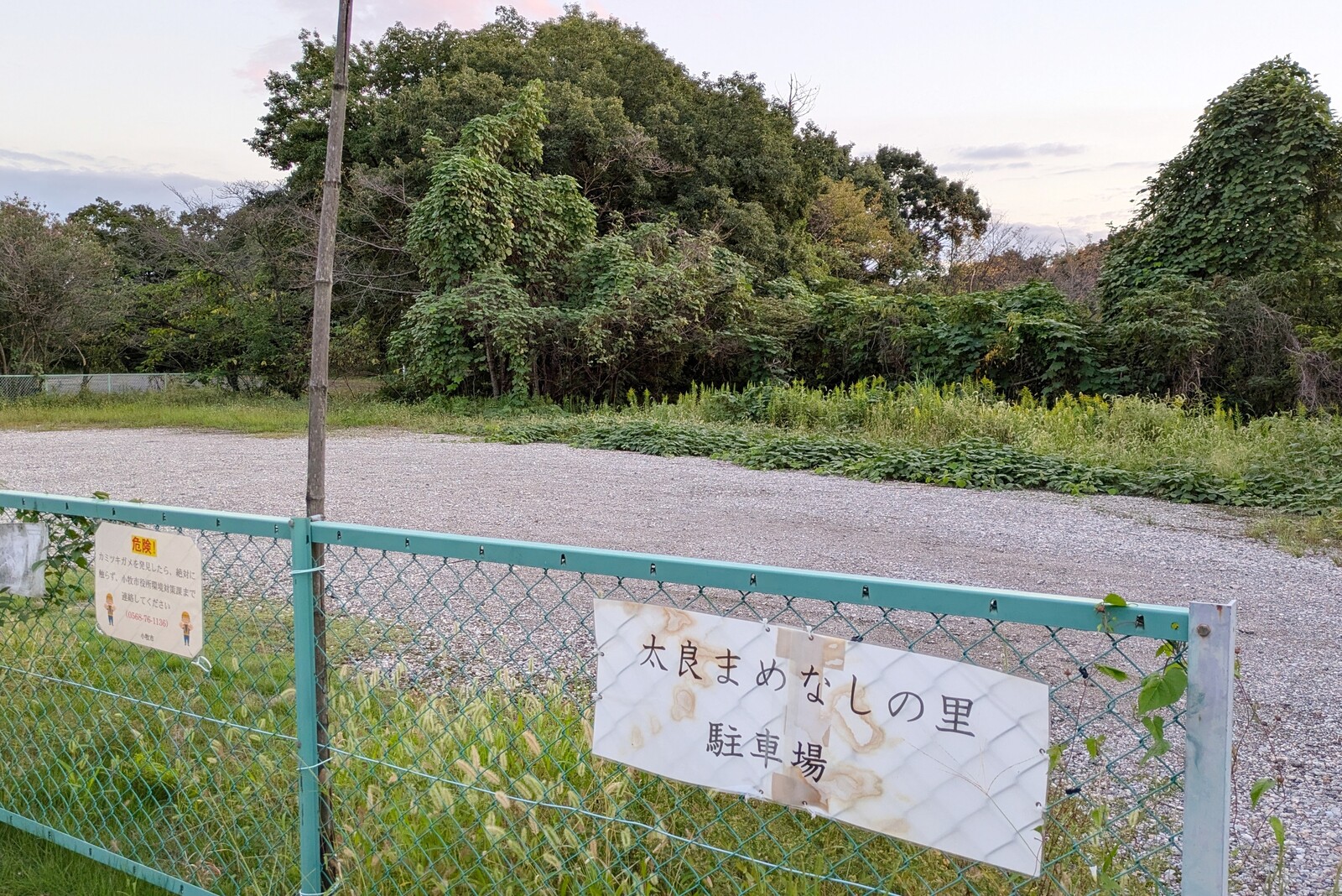 ここ、 小牧ヶ丘老人憩いの家の隣にある駐車場(※)のフェンスに、、