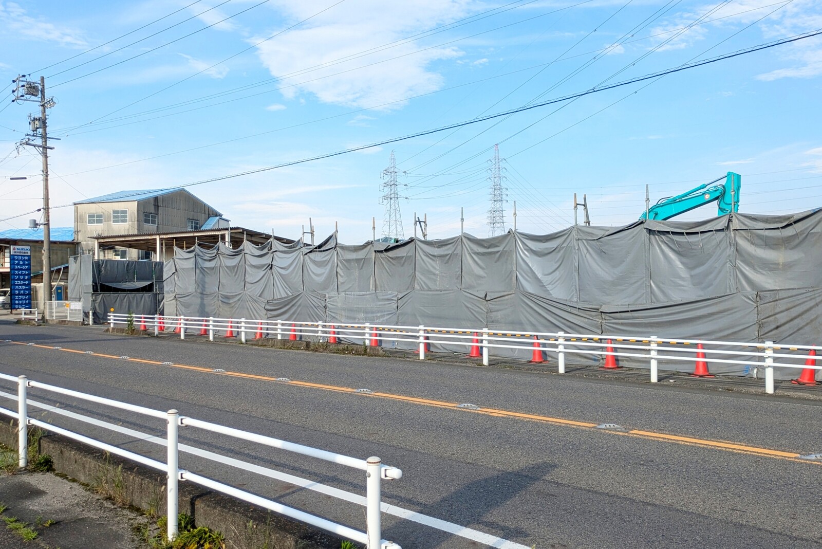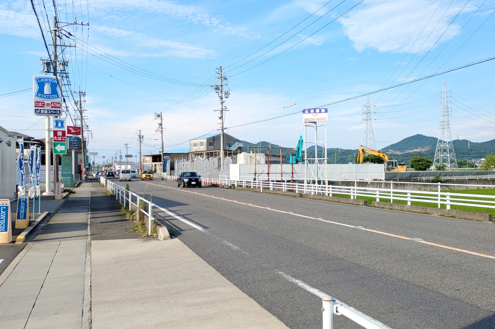 ローソンの斜め向かい側。写真右側の方に重機が2台見えますね。