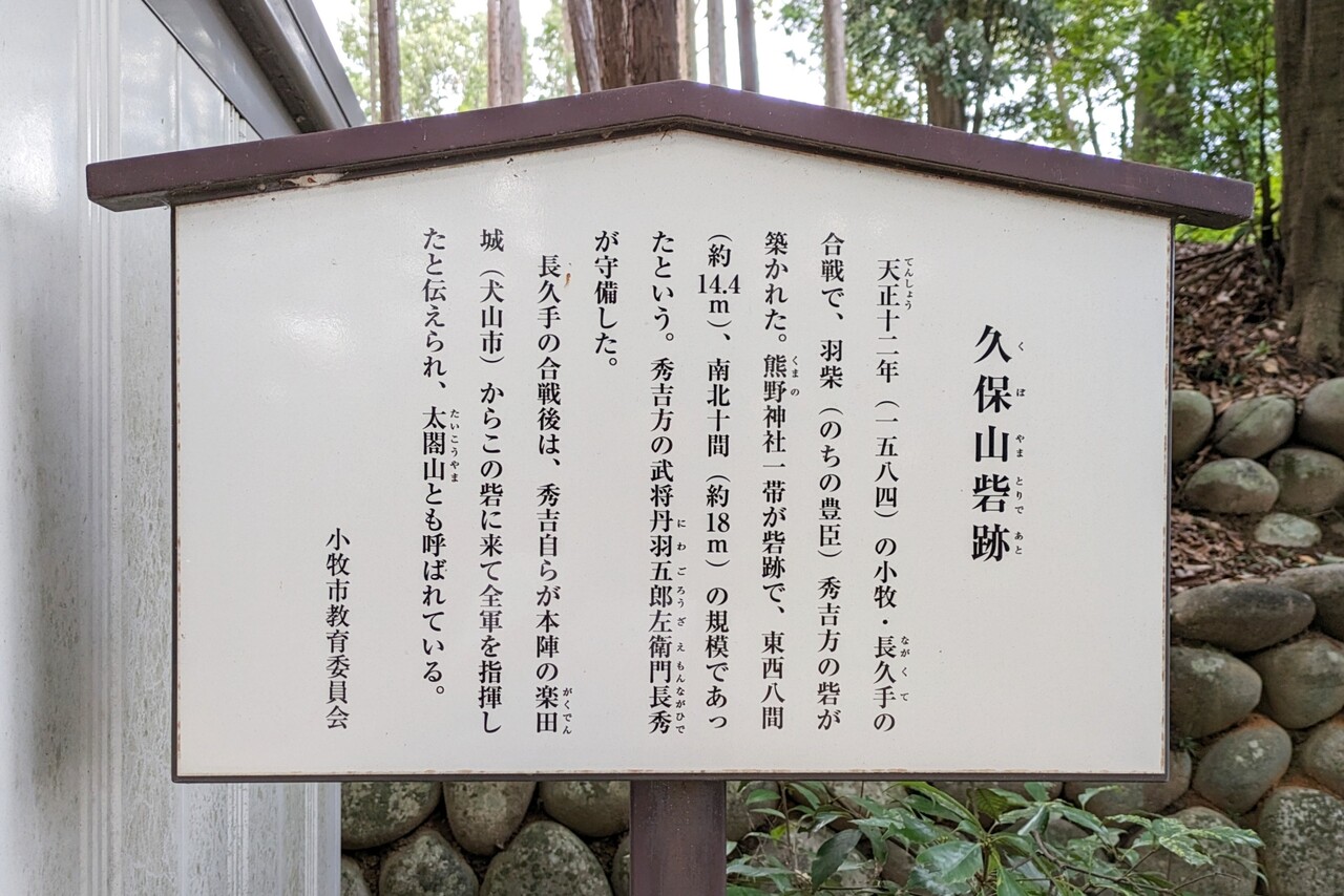 熊野神社があり、この高台は久保山(太閤山)と言われ、小牧の市街地エリアにある第3の山ですね。小牧山、岩崎山、久保山。