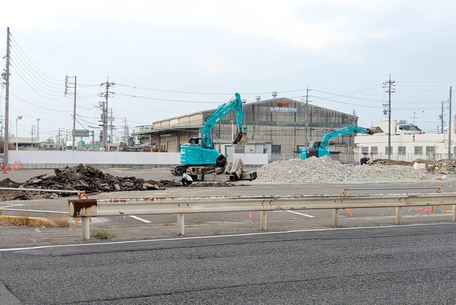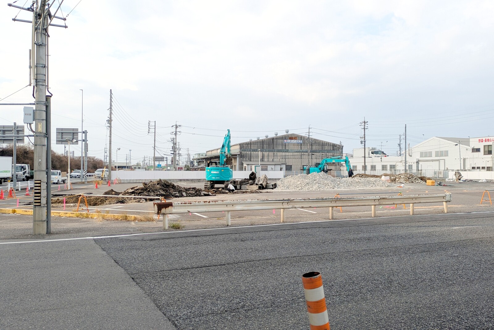 閉店後は看板が外れた状態でしばらくそのままでしたが、気づけば解体済に。ちょうど重機で瓦礫処理をしている様子でした。