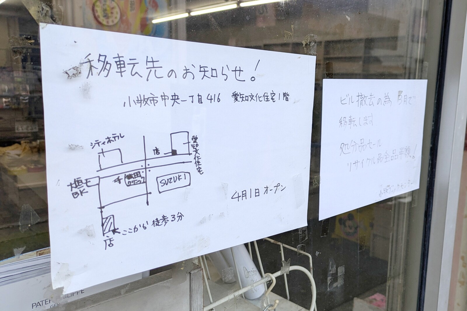 そんなブックセンターは移転オープン予定。そして、隣の貼り紙には「ビル撤去の為」という文字。