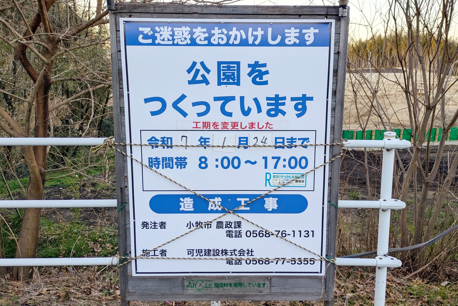 造成工事の期間は元々は昨年10月頃までとなっていましたが、2回ほど延長し1月24日までとなっています。