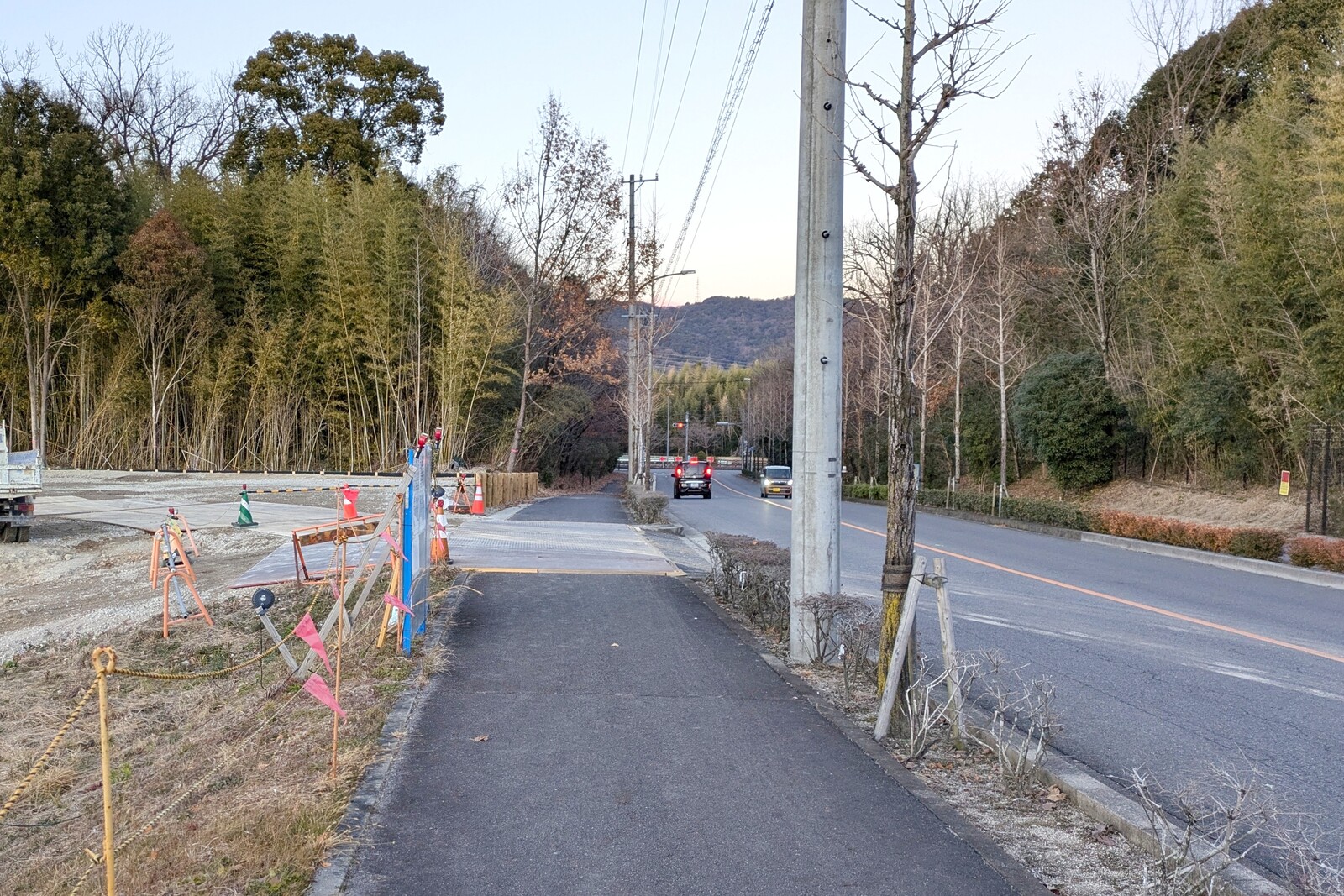写真左側が現地。桃花台を北側方面に出てすぐの場所。