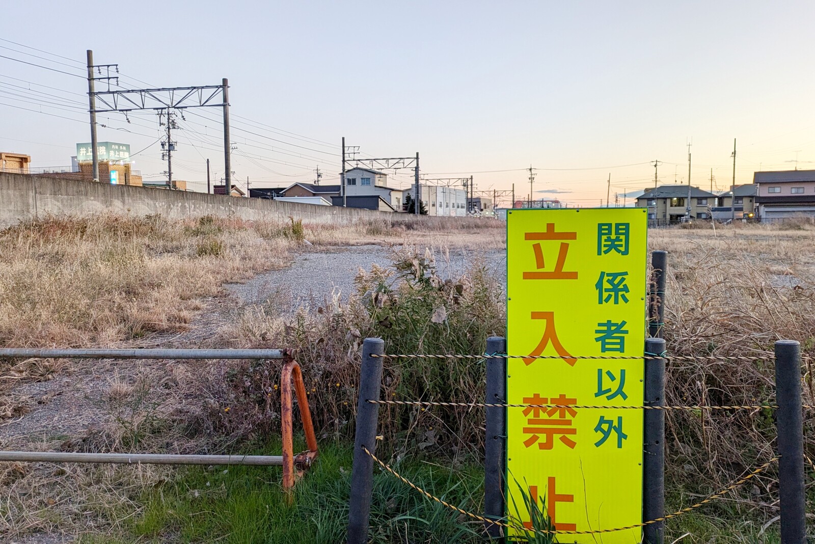 現時点で工事は始まっておらず、立入禁止の黄色い看板が立っています。