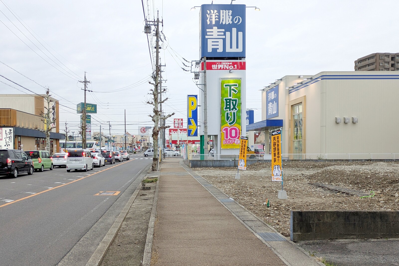 この通りは交通量も多く、色んなお店が並ぶゾーン。何かお店ができるのかなと思っていましたが、駐車場に。