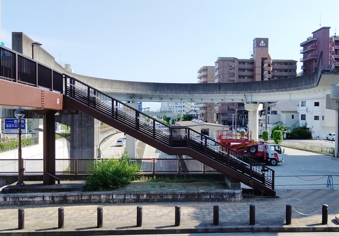 そして、線路に挟まれていて遠目から見ると見えなかった歩道橋が目立つように。