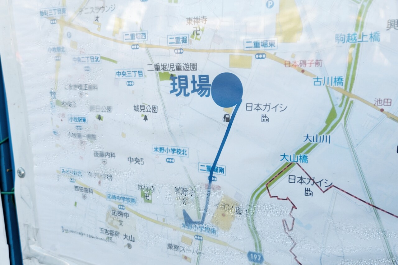 現場と書いてある場所がちょうどケーズデンキの隣のところ。