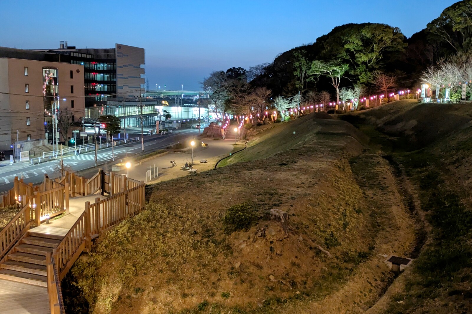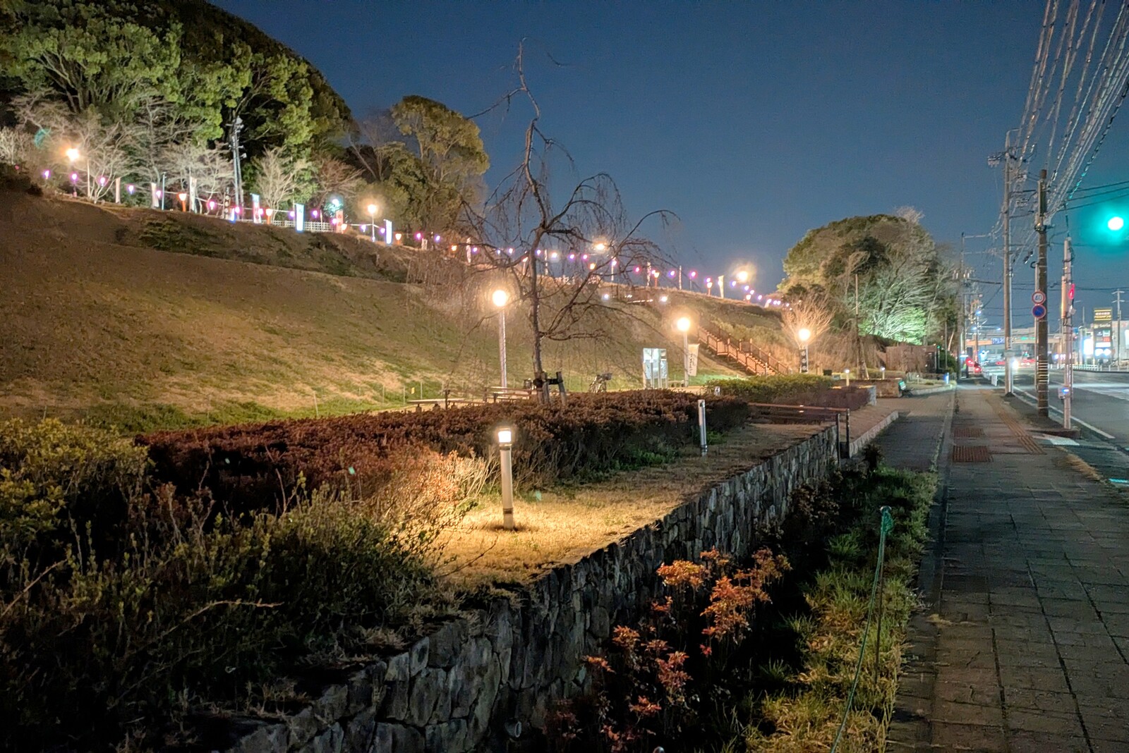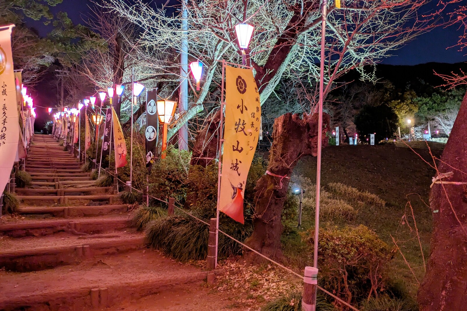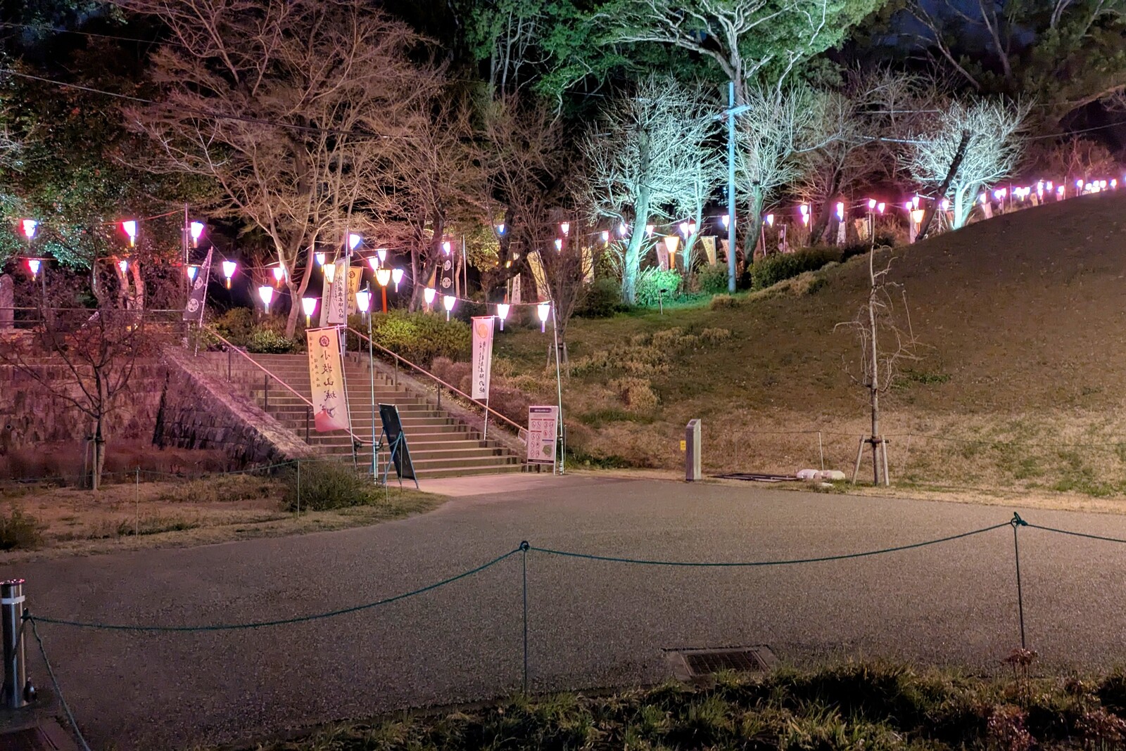 すでに何人かライトアップを堪能している方がいました。ゆっくり歩いてライトアップを堪能したいところですが、花粉症持ちなので長々と滞在はしていられない状況w