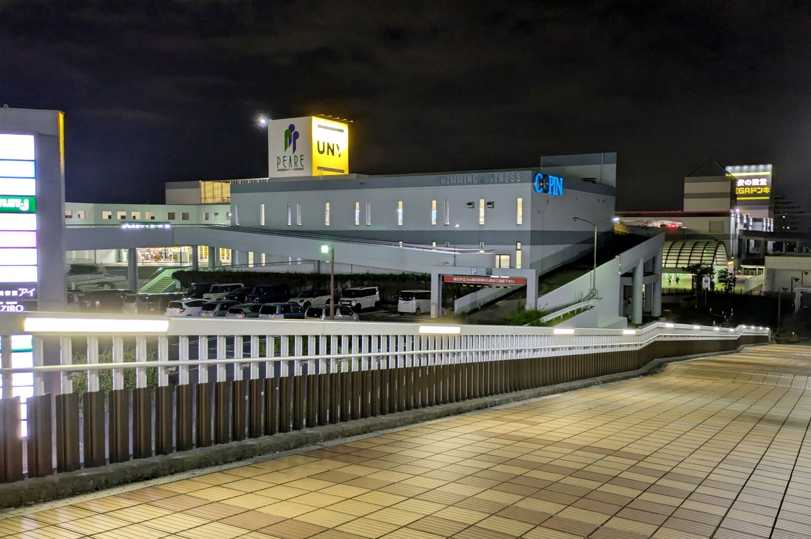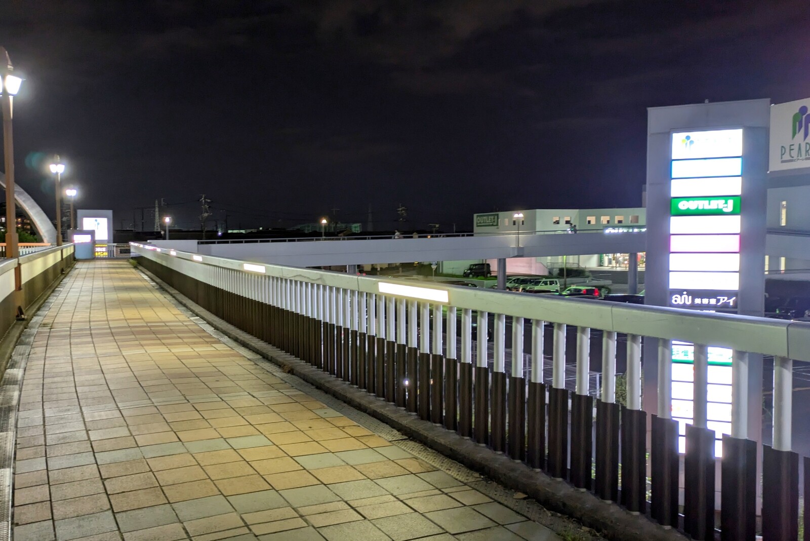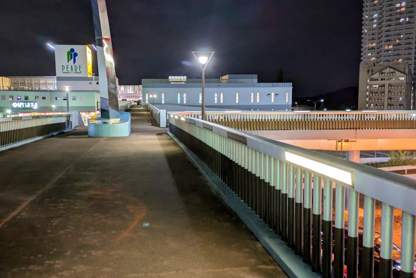 旧ピーチライナーの桃花台センター駅跡に繋がる坂もしっかり点灯。